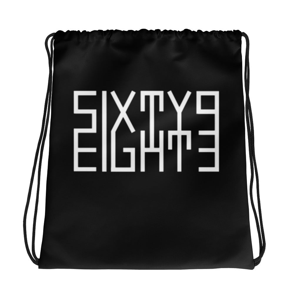 Sixty Eight 93 Logo White & Black Drawstring Bag