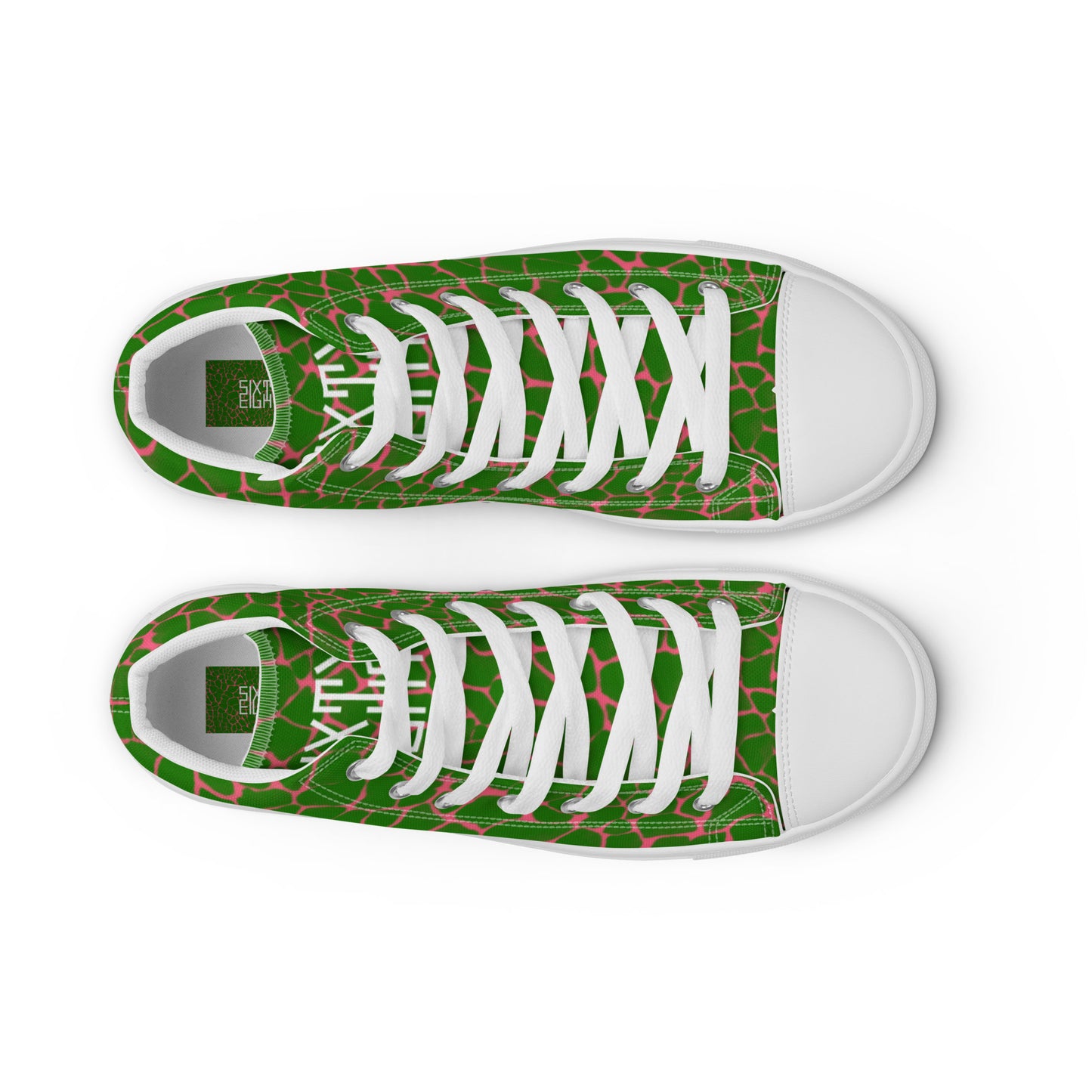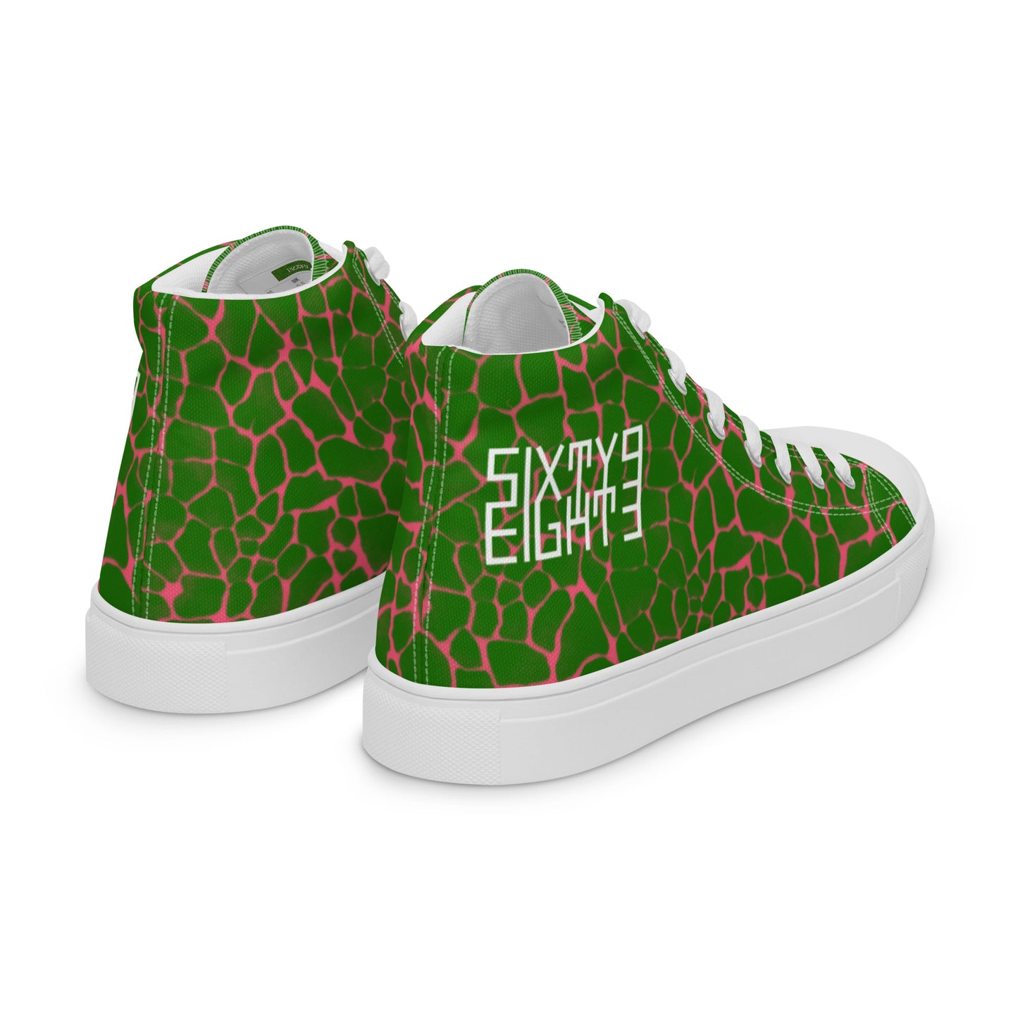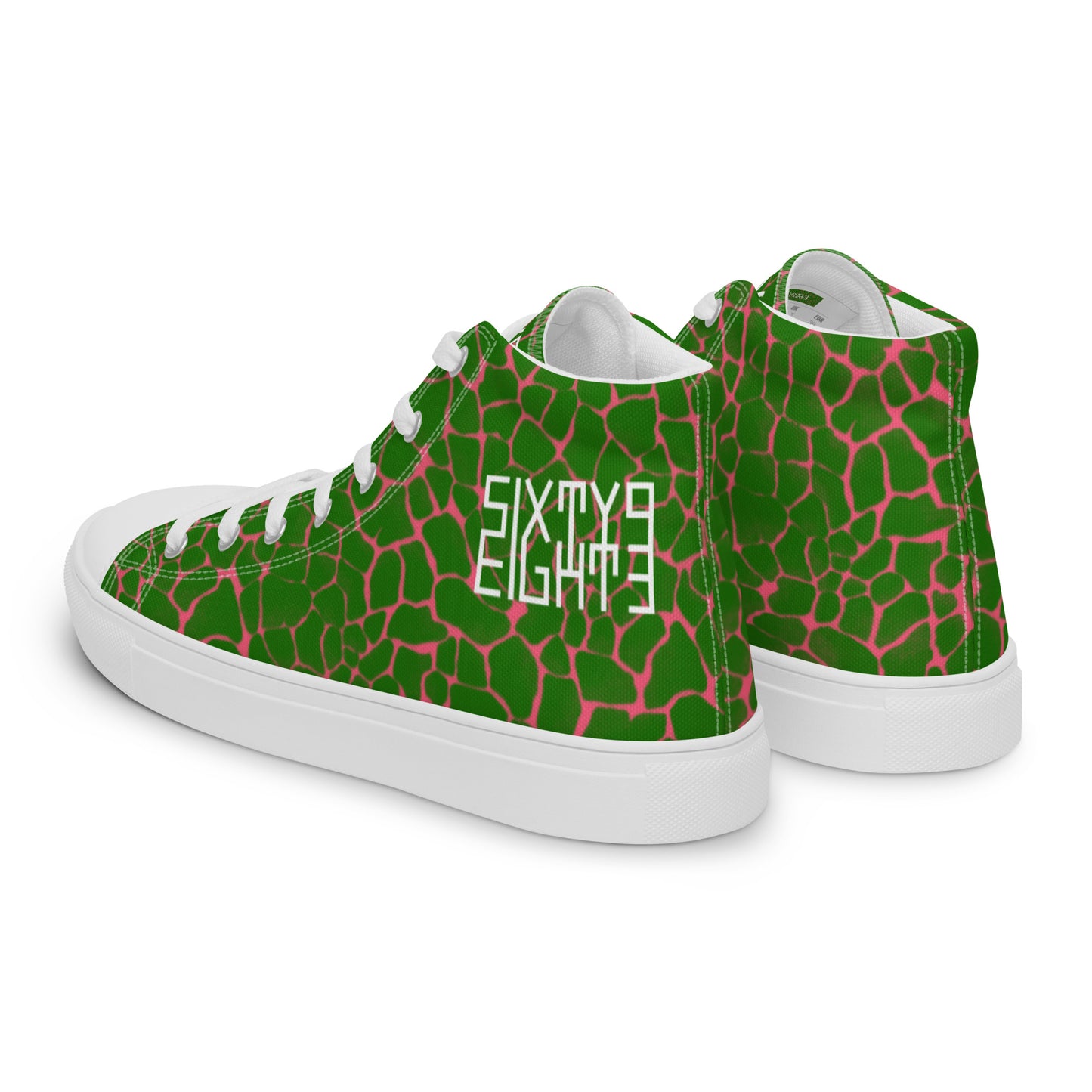 Featuring a Forest Green and Pink Boa print design. Step up your shoe game with the High Top SixtyEight 93 Shoes. These handmade, trendy shoes are sure to spice up your outfit. Get yours now!