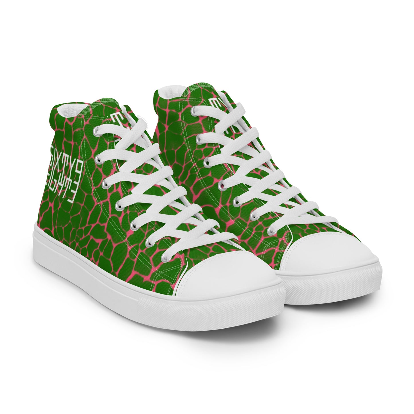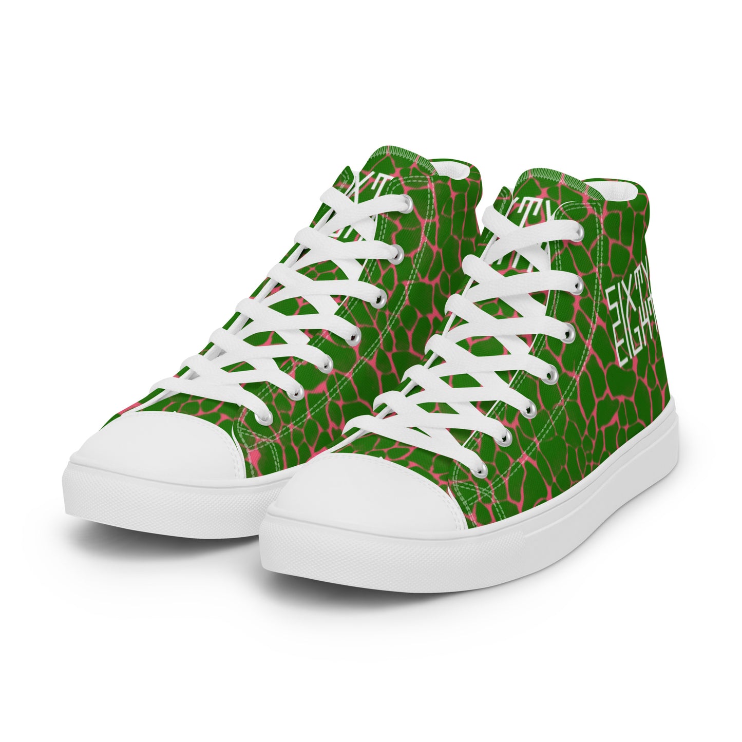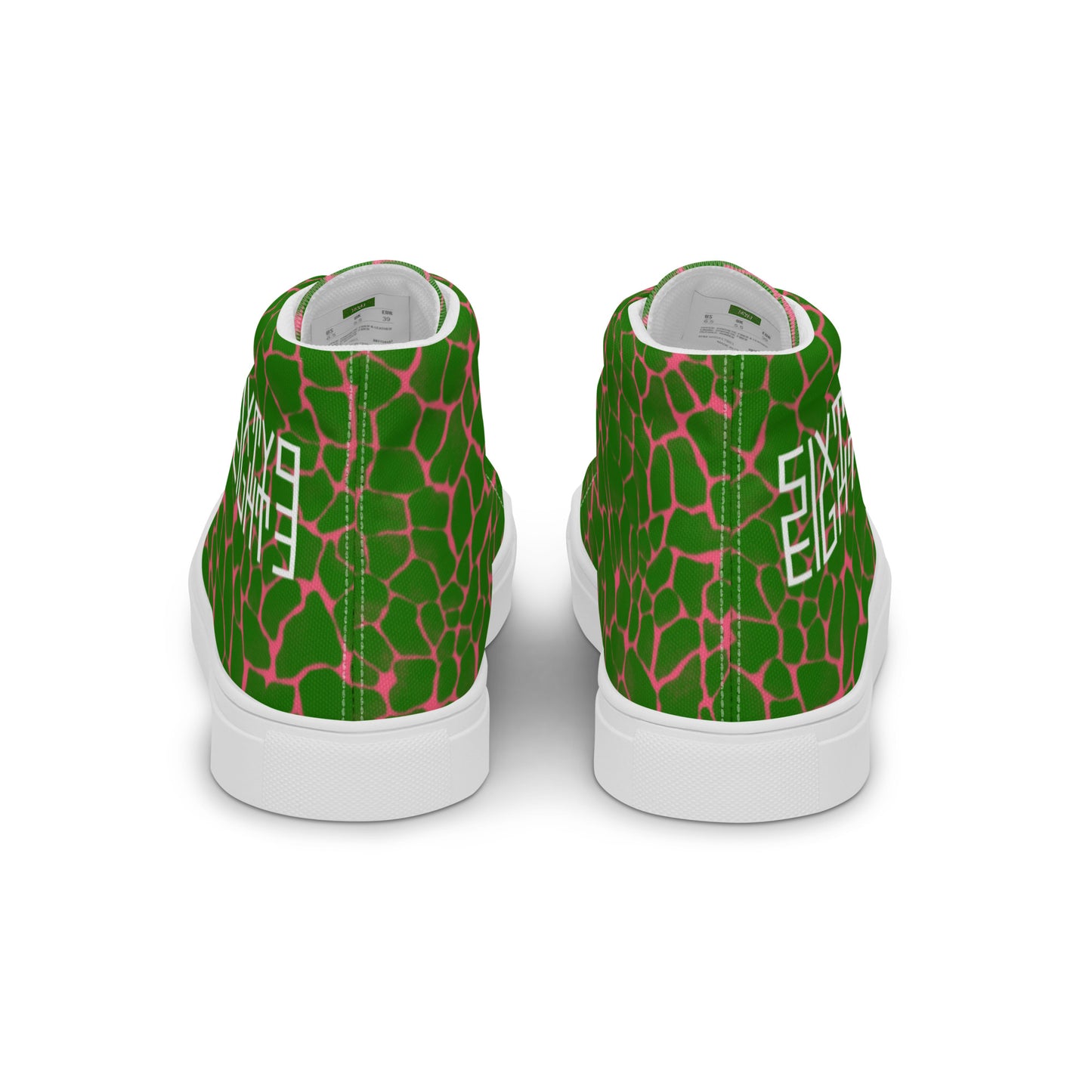 Featuring a Forest Green and Pink Boa print design. Step up your shoe game with the High Top SixtyEight 93 Shoes. These handmade, trendy shoes are sure to spice up your outfit. Get yours now!