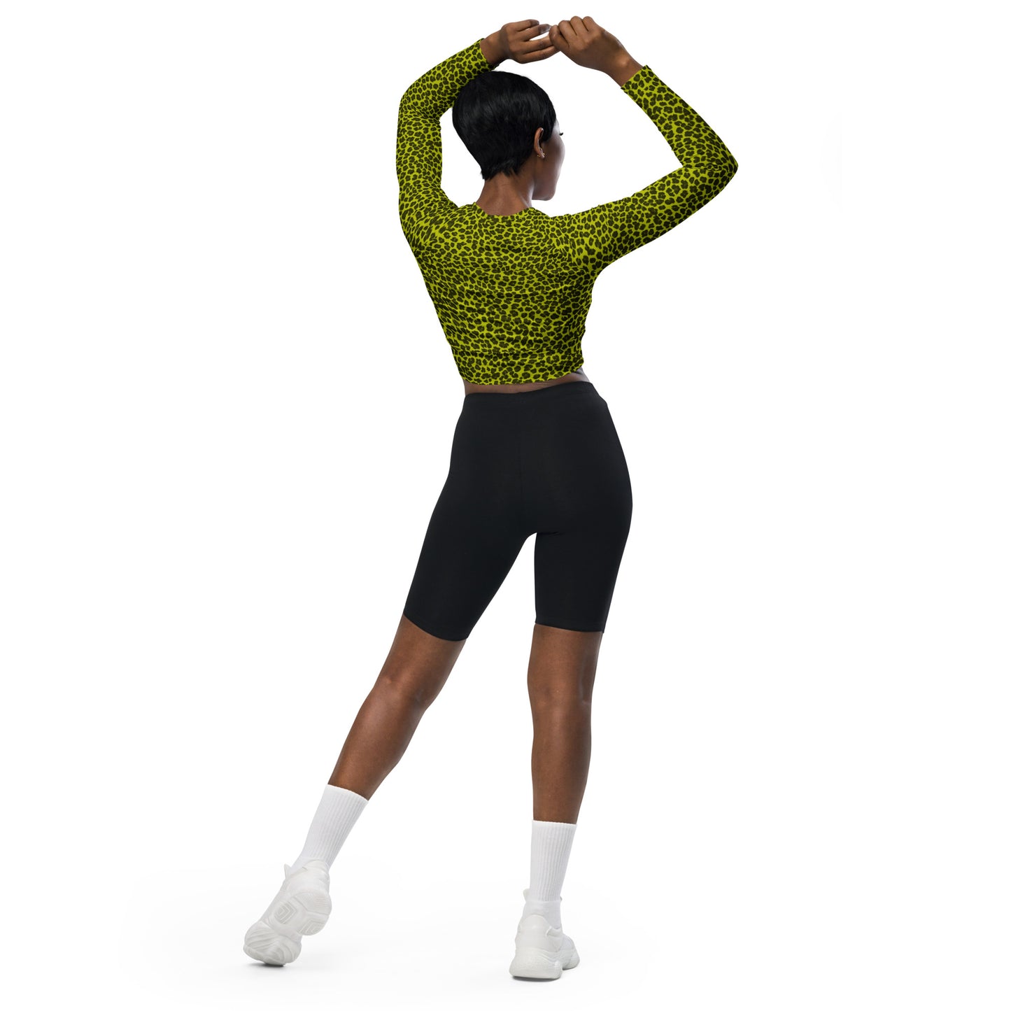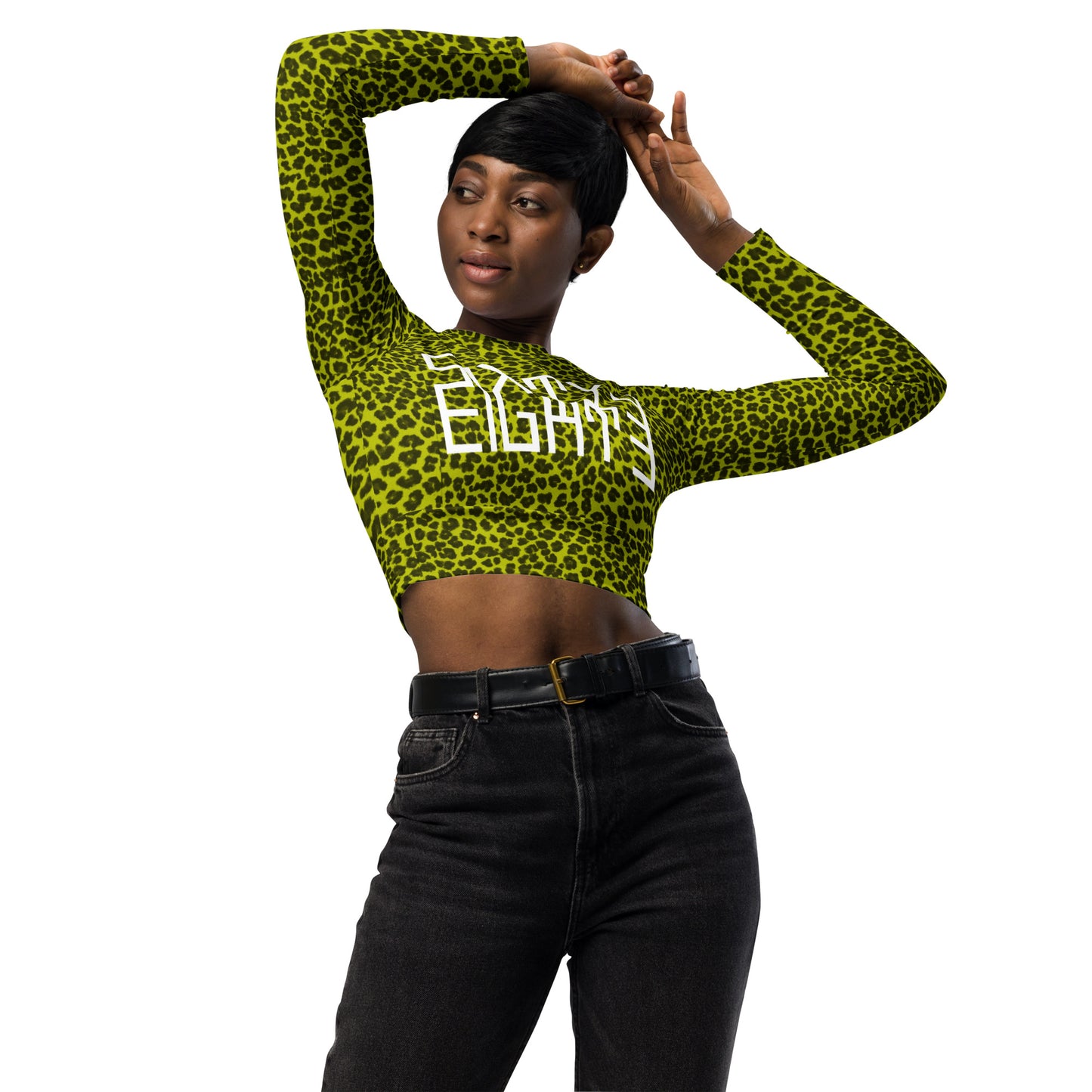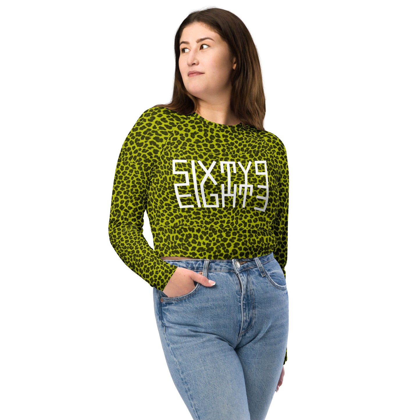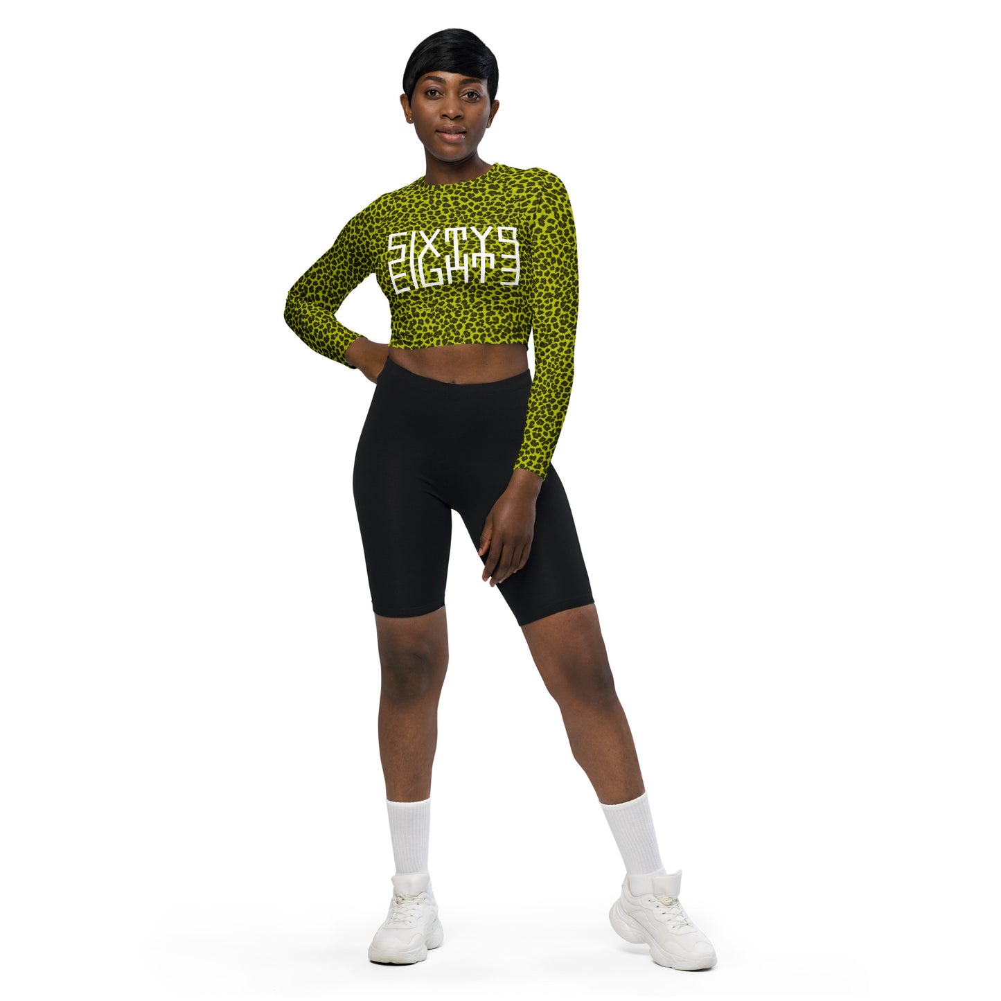 Sixty Eight 93 Logo White Cheetah Lemonade Recycled Long-Sleeve Crop Top