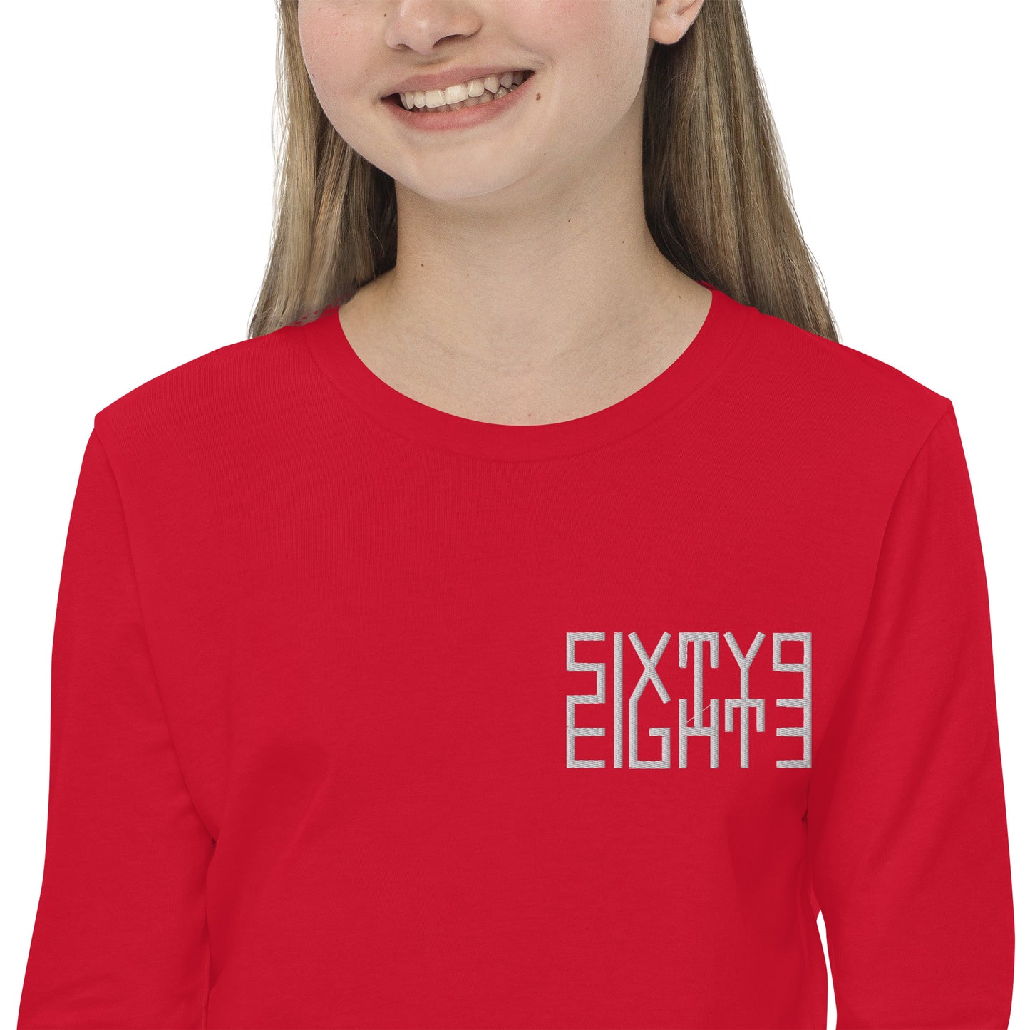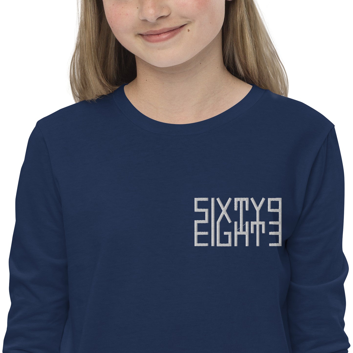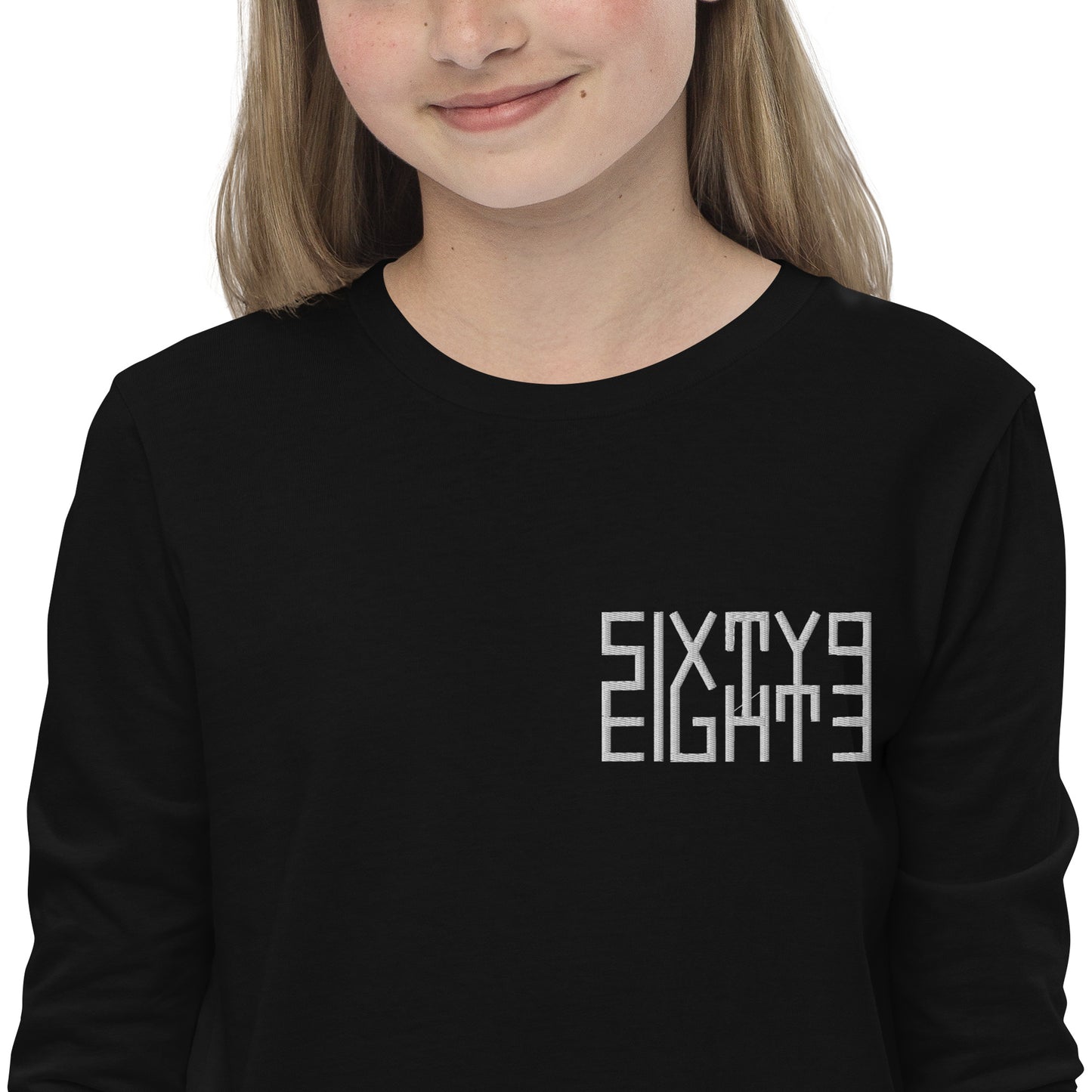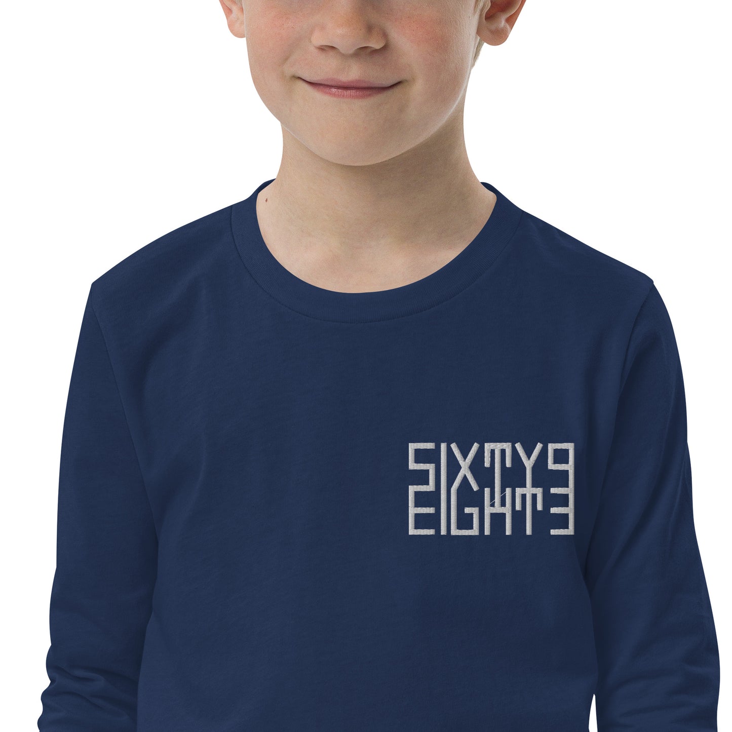 Sixty Eight 93 Logo White Embroidered Youth Long Sleeve Tee