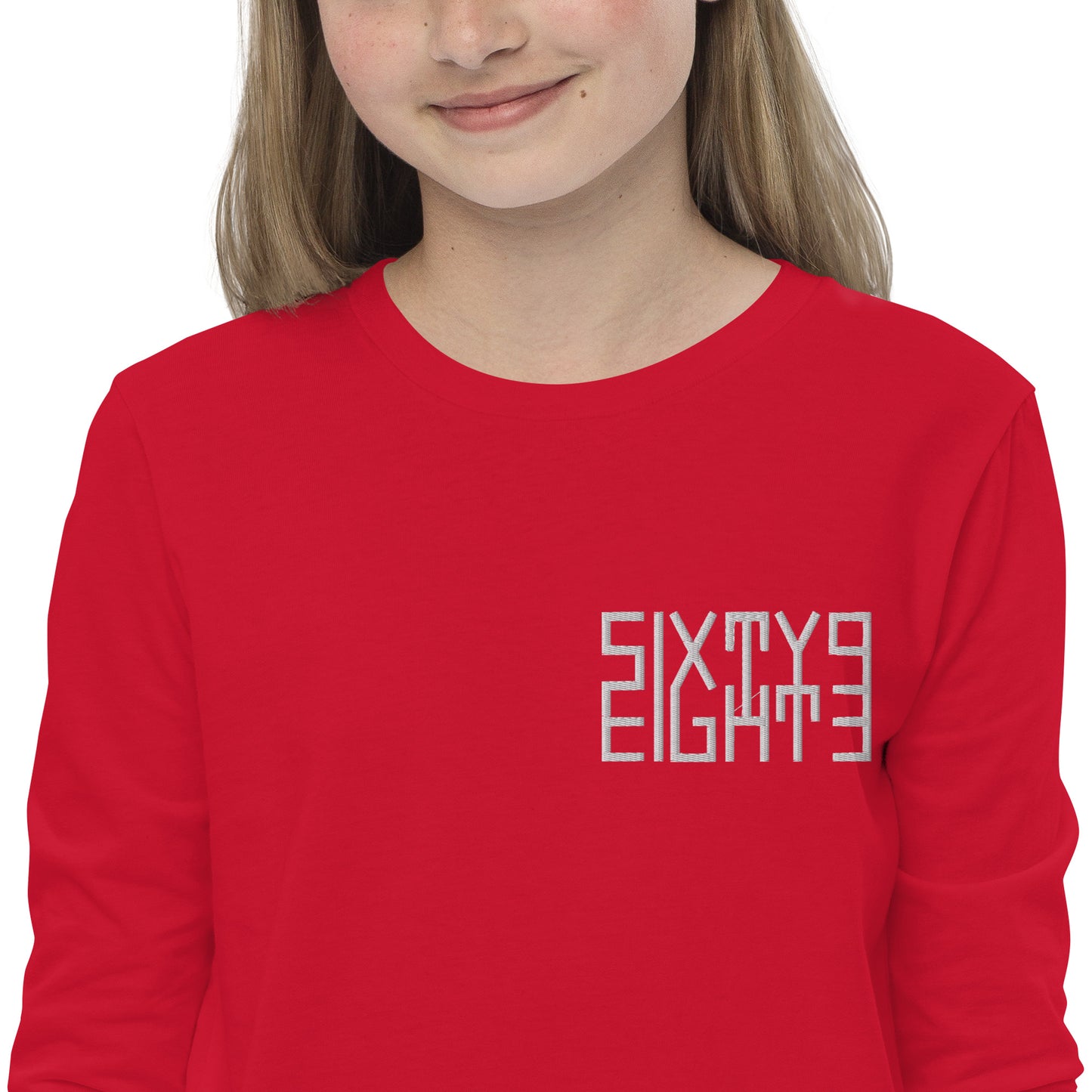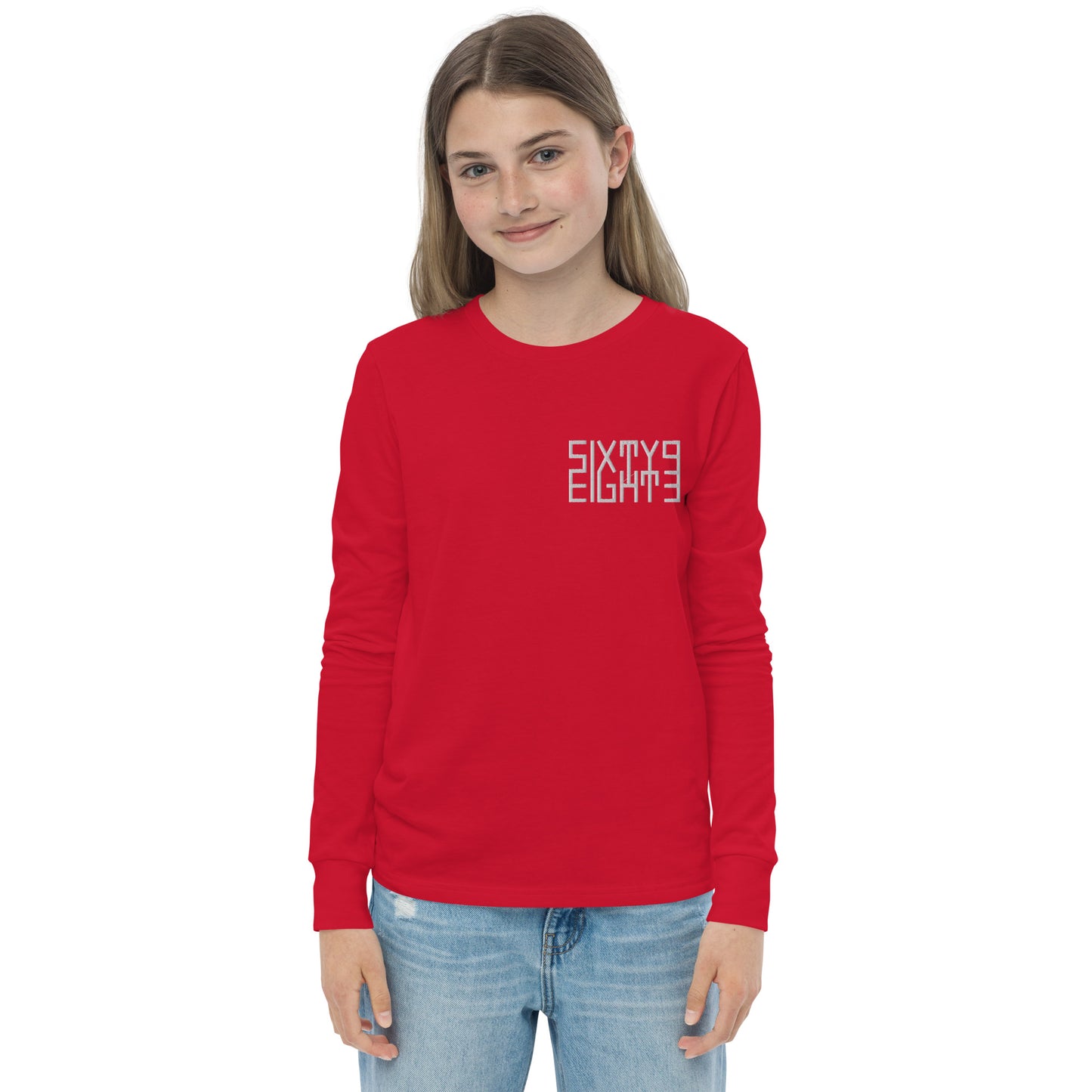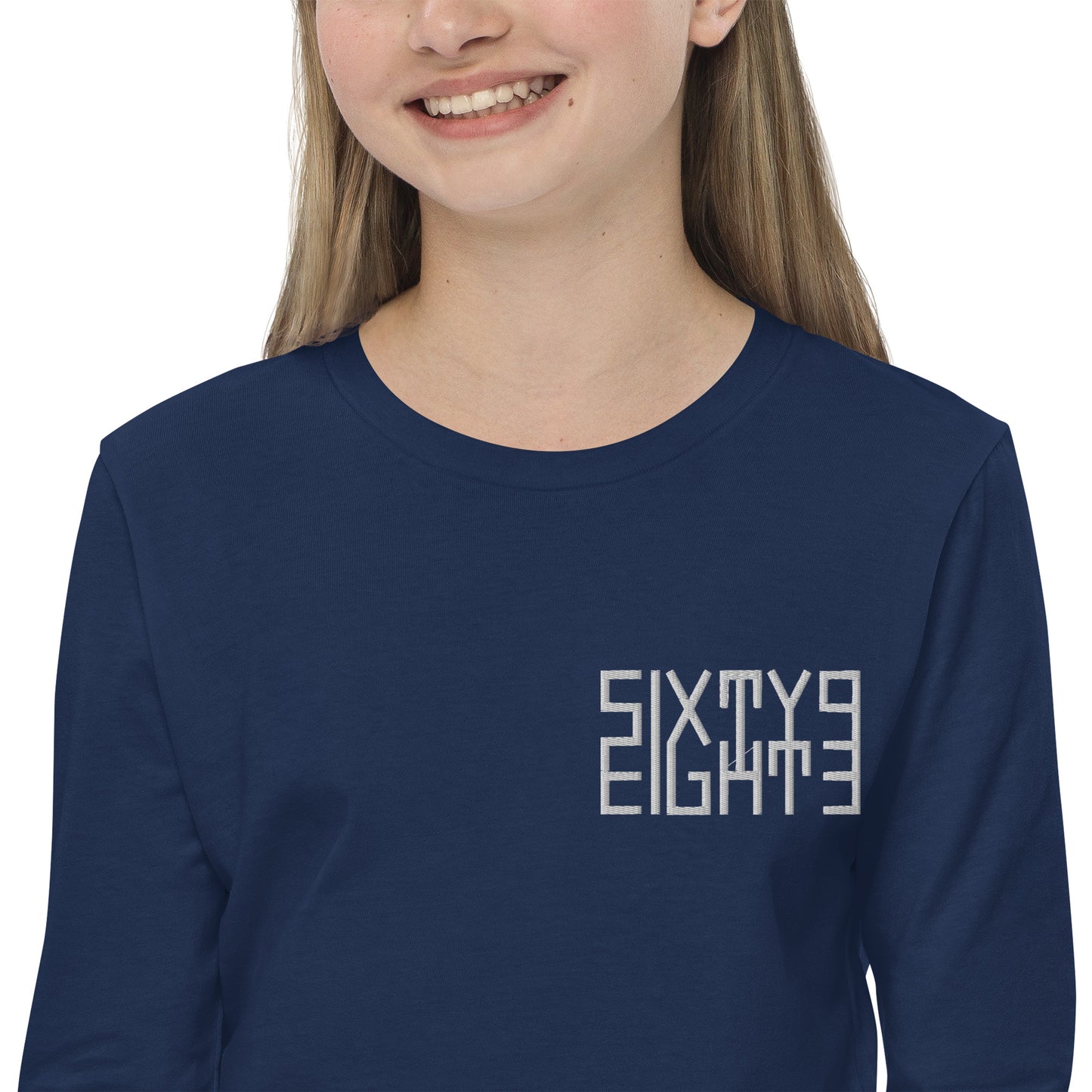 Sixty Eight 93 Logo White Embroidered Youth Long Sleeve Tee