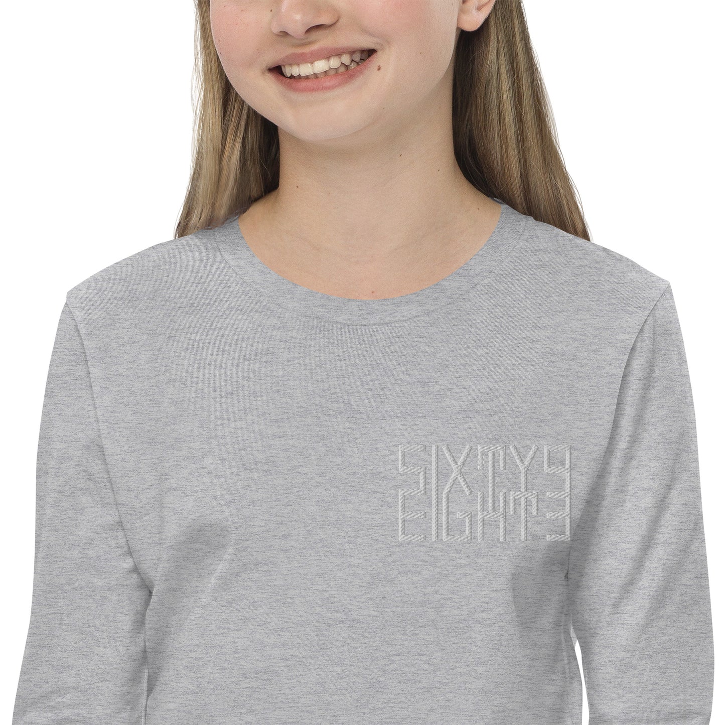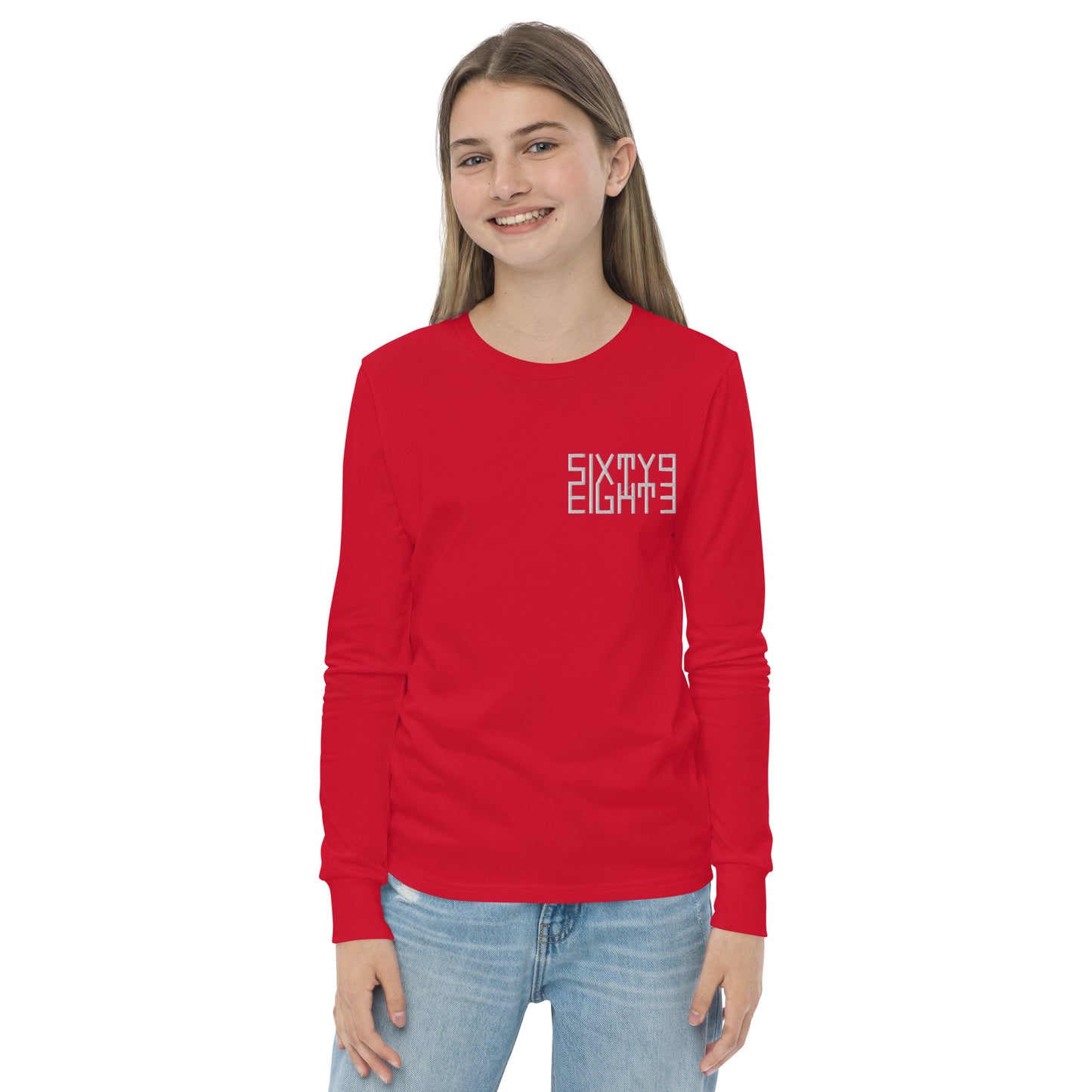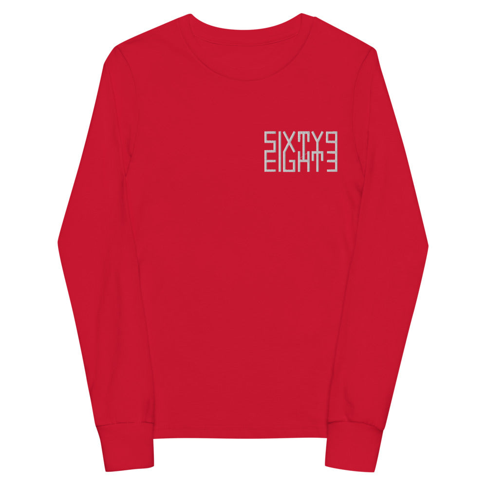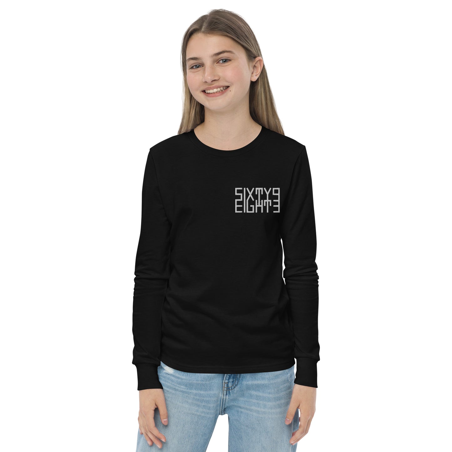 Sixty Eight 93 Logo White Embroidered Youth Long Sleeve Tee