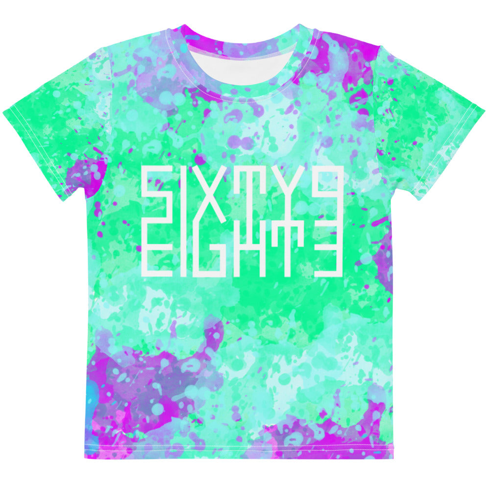 Sixty Eight 93 Logo White Incredible Marble Blue Kids Crew Neck T-Shirt