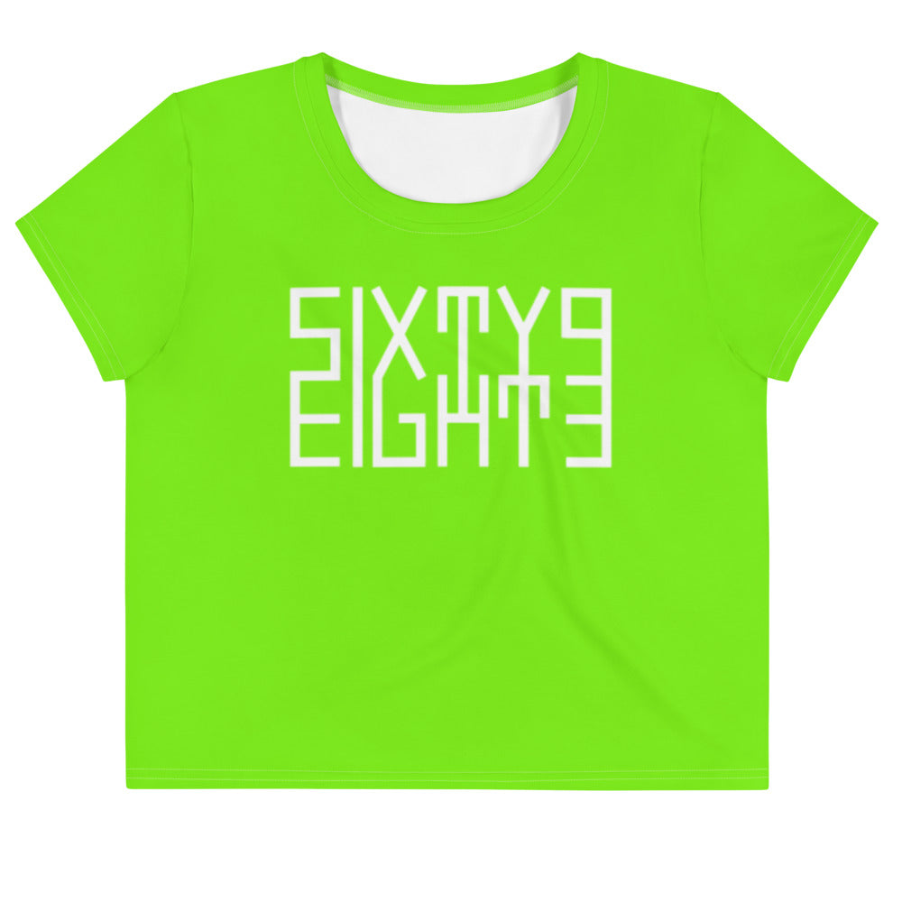 Sixty Eight 93 Logo White Lime Green Crop Tee
