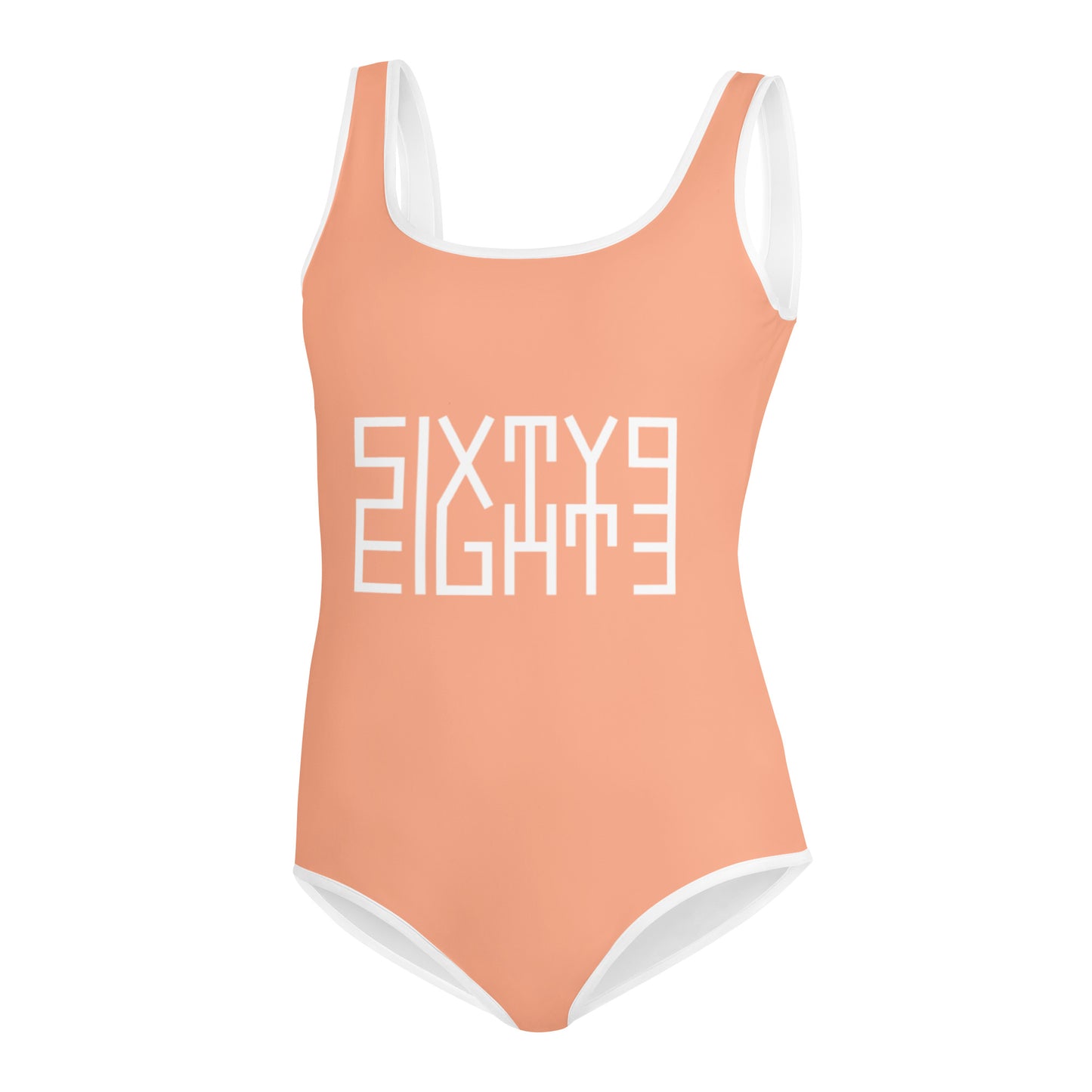 Sixty Eight 93 Logo White & Peach Youth Swimsuit
