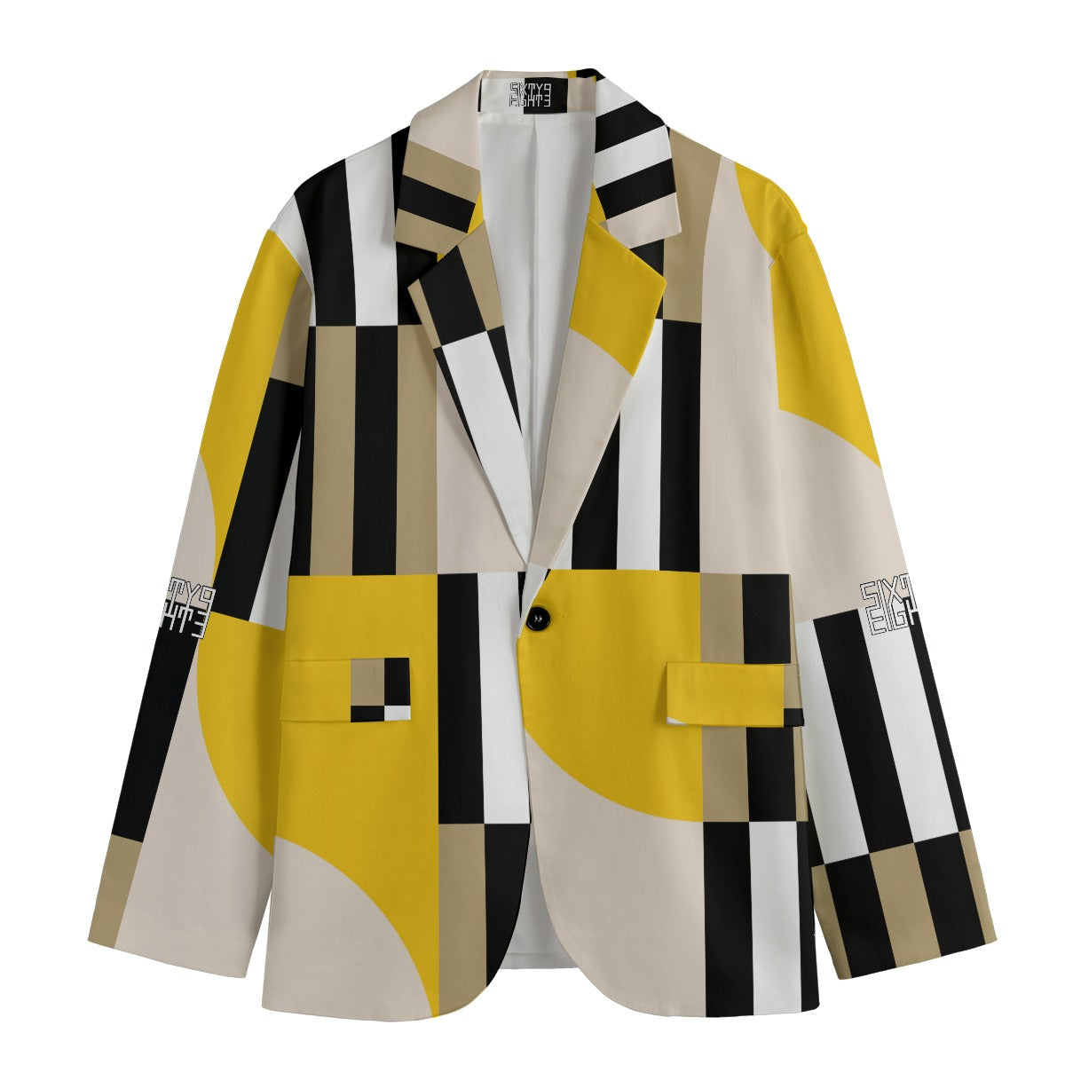 A perfect addition to any man's wardrobe, this Sixty Eight 93 Men's Casual Flat Lapel Collar Blazer is the essence of sophistication. Designed with a cotton fabric and handsome geometric pattern in a timeless combination of yellow, black, white, tan, and gold, this blazer is sure to make a lasting impression.