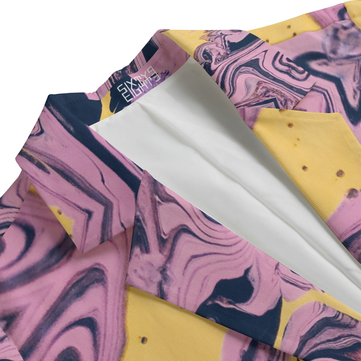 Look your absolute best in this unique leisure blazer crafted from abstract shades of pink, orange, and dark blue cotton. An exquisite piece perfect for any occasion, the Sixty Eight 93 Logo White Women's Leisure Blazer will have you turning heads in style.