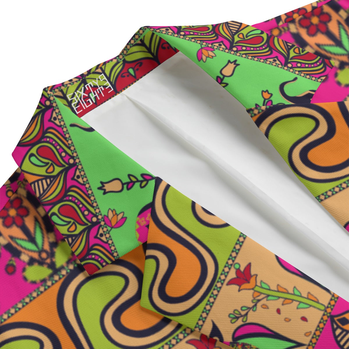 This Sixty Eight 93 Logo White Men's Casual Flat Lapel Collar Blazer is a breathtaking statement piece that will make you stand out. Crafted from luxurious cotton, this blazer features a lapel collar, along with an eye-catching animal print design in bold shades of orange, lime green, and fuchsia. Make a statement with this luxurious and unique blazer.