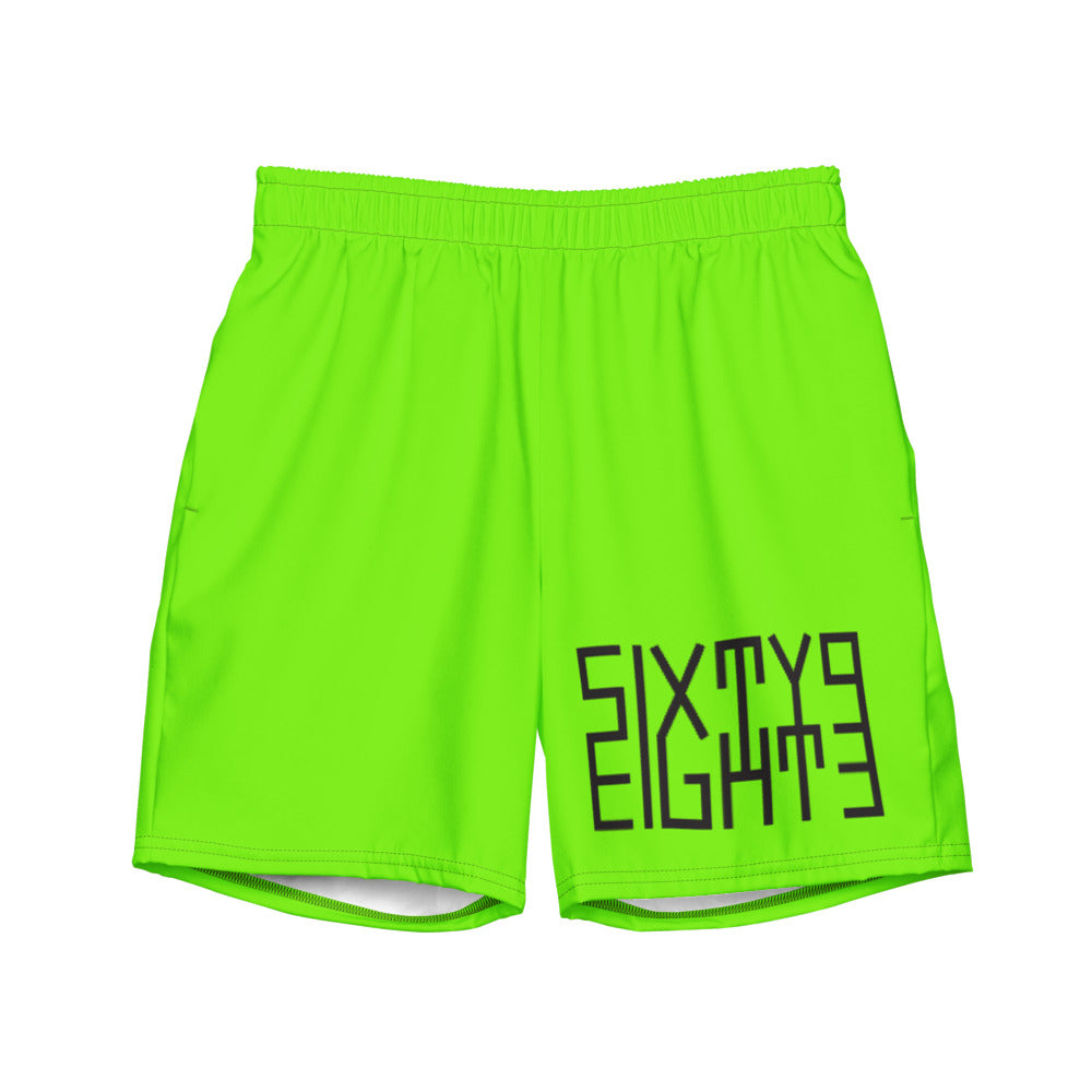 Sixty Eight 93 Logo Black & Lime Green Men's Swim Trunks