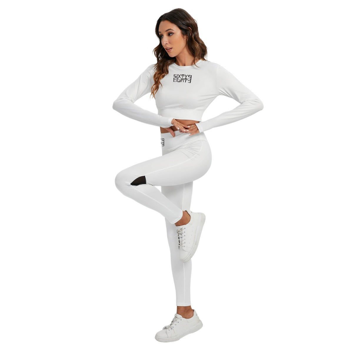 Indulge in luxury with our Sixty Eight 93 Logo Black White Women's Sport Set. Crafted with a sleek white microfiber, this set features a chic backless top and comfortable leggings. Elevate your workout routine with this exclusive and sophisticated set.