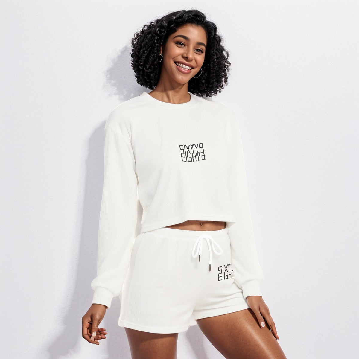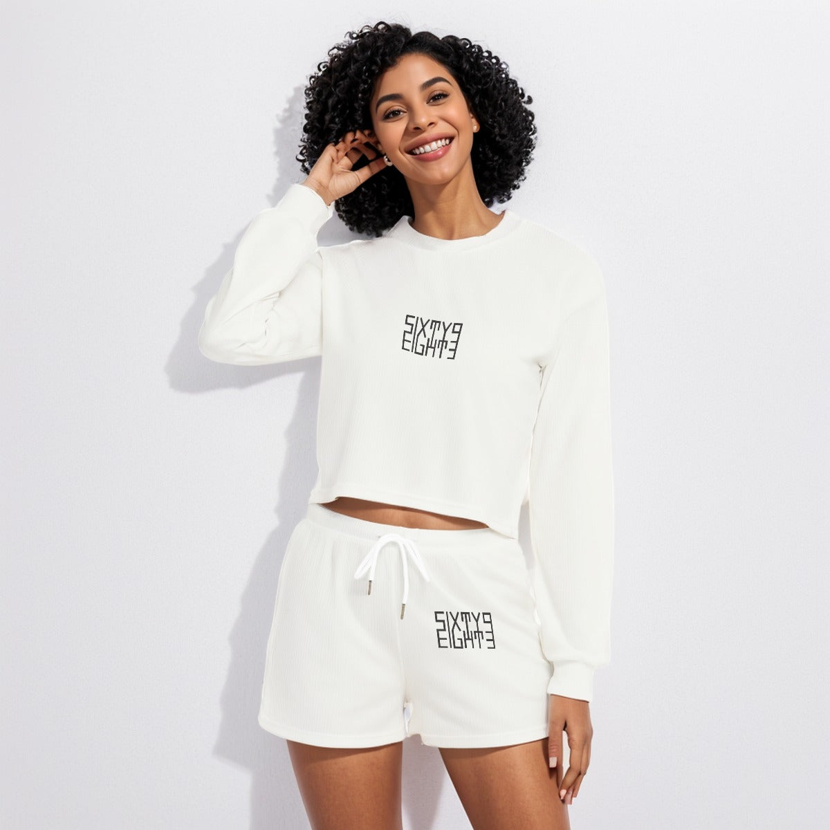 Sixty Eight 93 Logo Black White Women's Short Sweatshirt And Pants Set