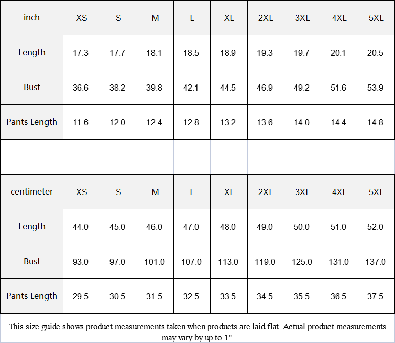 | Pants Length | 29.5 | 30.5 | 31.5 | 32.5 | 33.5 | 34.5 | 35.5 | 36.5 | 37.5 |