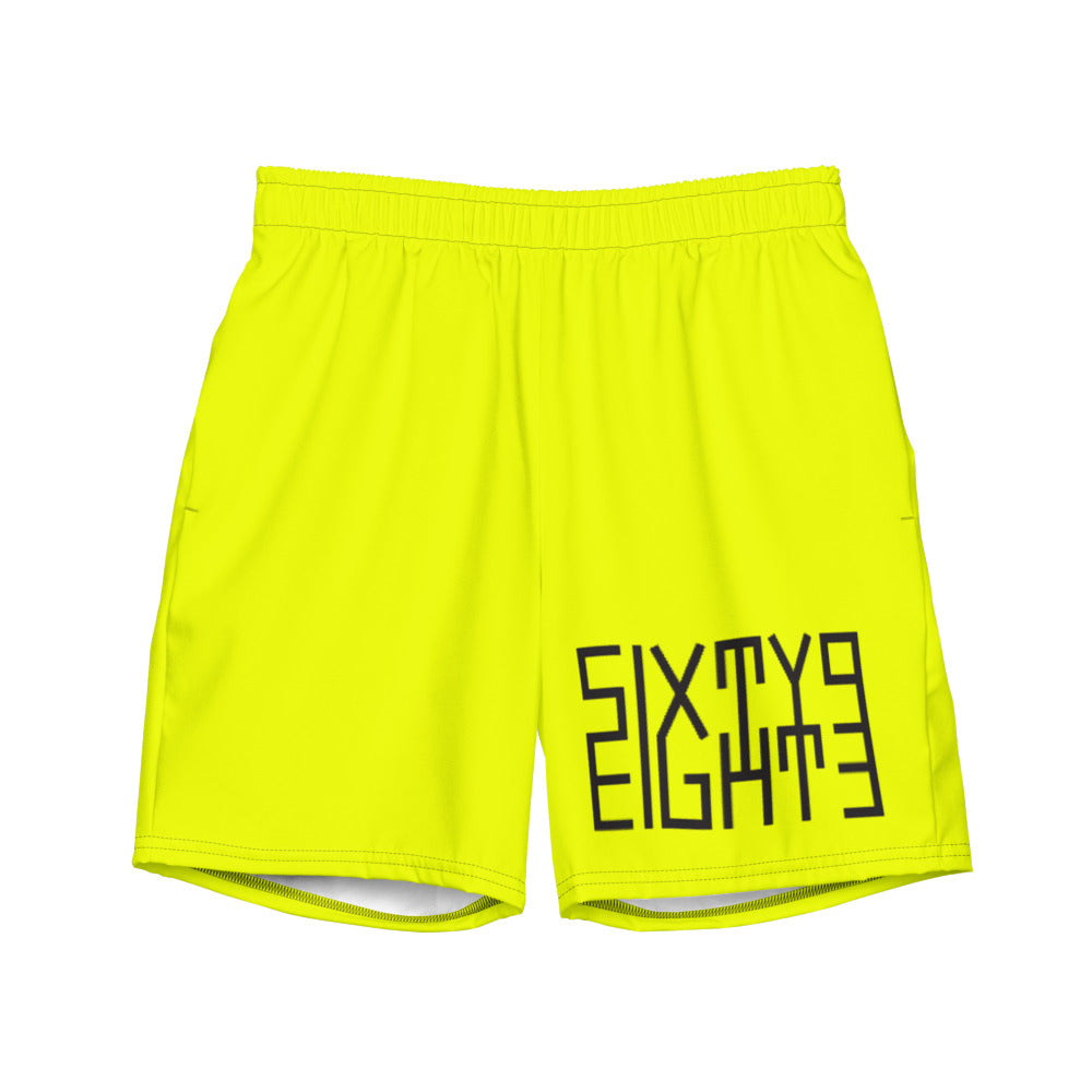 Sixty Eight 93 Logo Black & Yellow Men's Swim Trunks