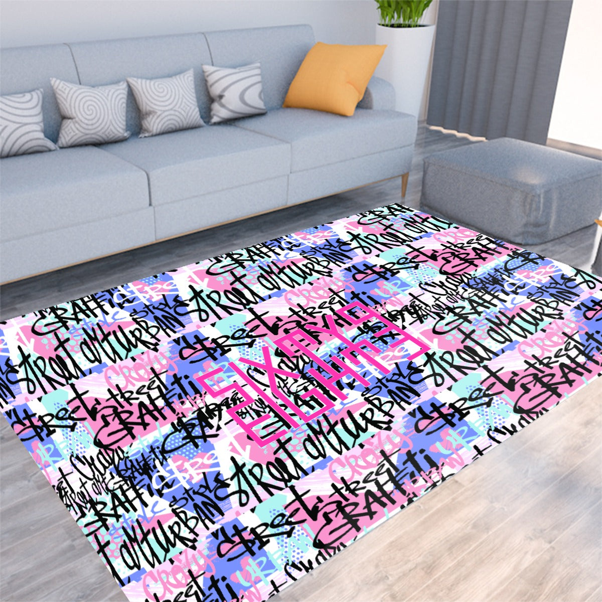 Indulge in a touch of artistic flair with our Sixty Eight 93 Logo Fuchsia & White Foldable Rectangular Floor Mat. The street graffiti design adds a bold and edgy touch, while the non-slip backing ensures safety and stability. The thickened mat provides luxurious comfort for your feet, making it a perfect addition to any space. Elevate your style with this unique and functional floor mat.