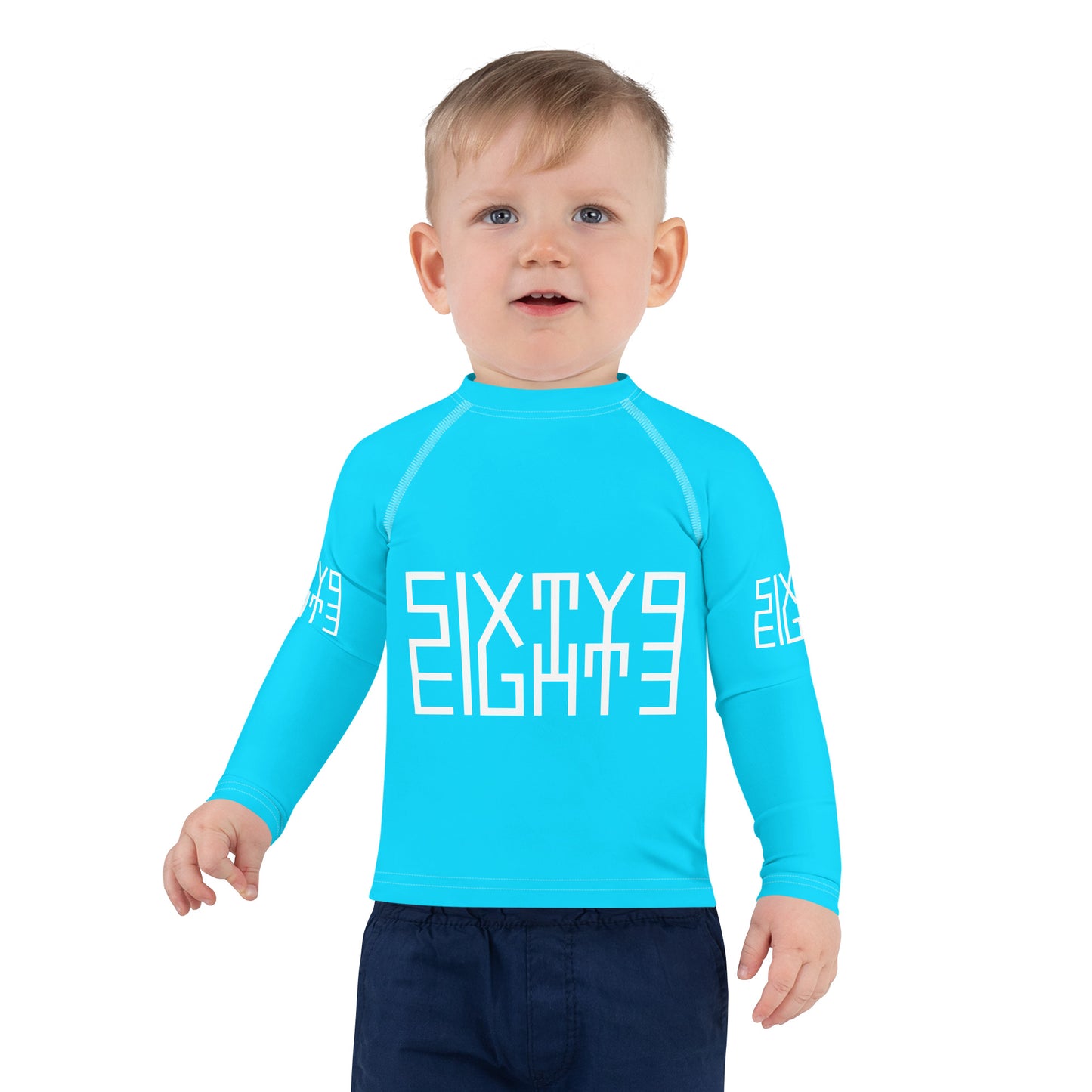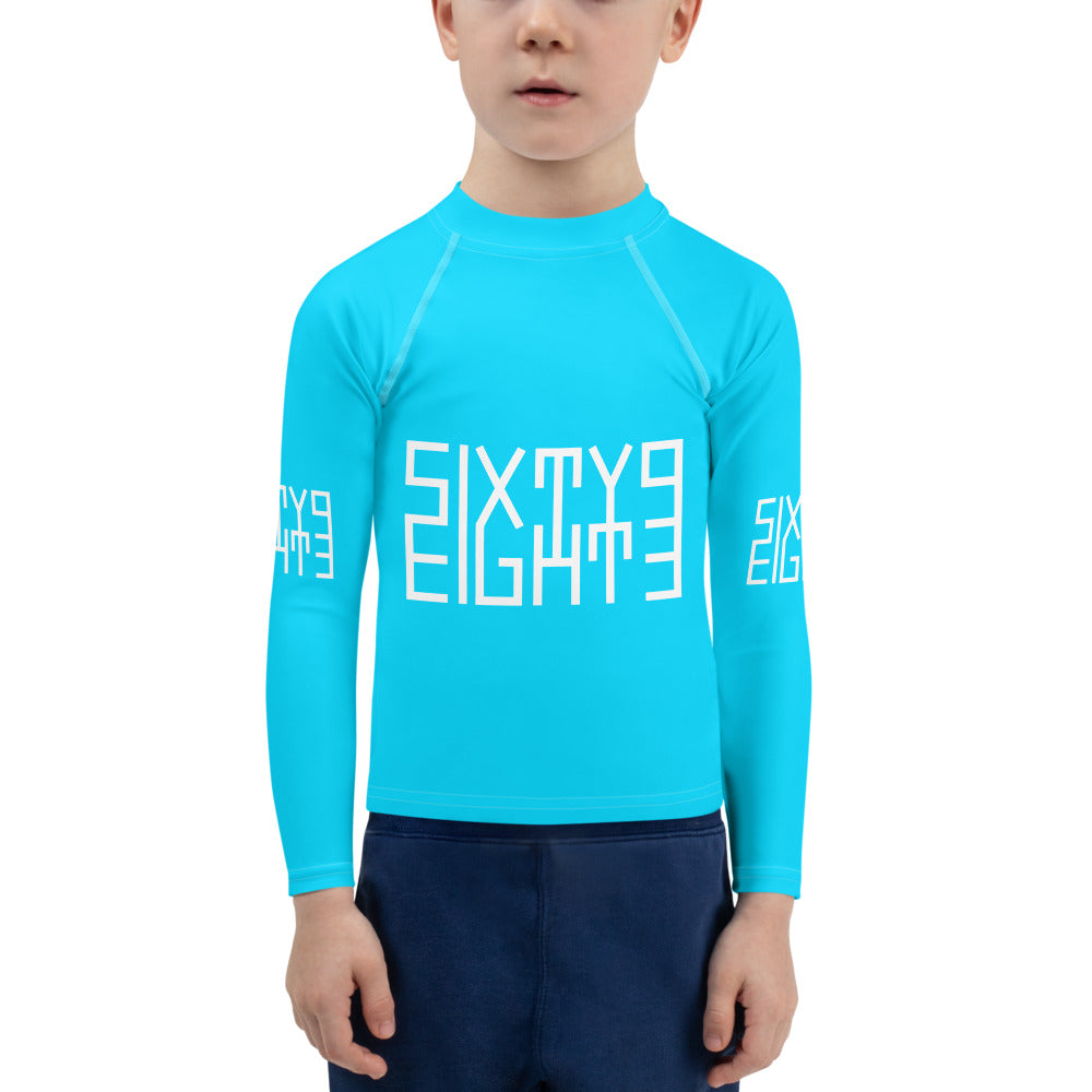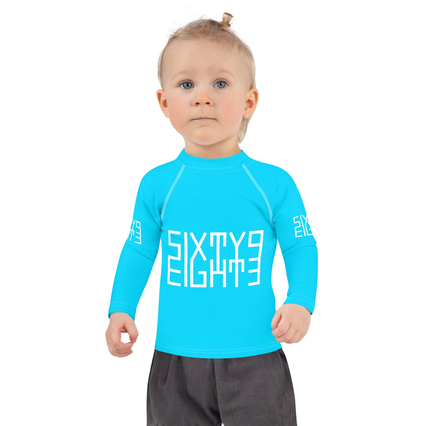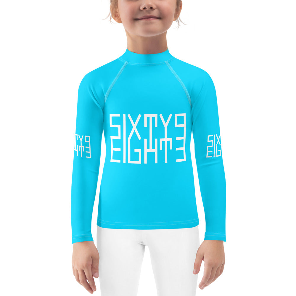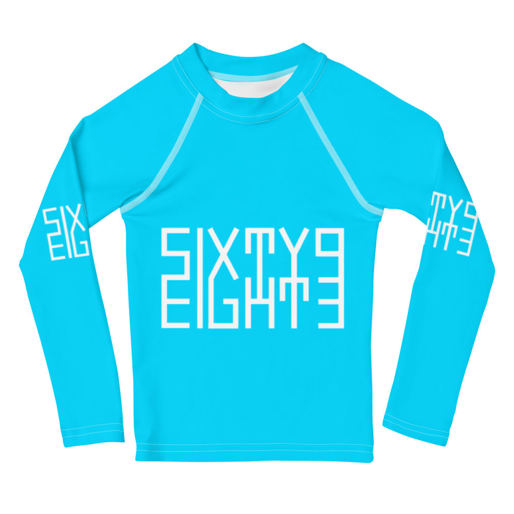 Sixty Eight 93 Logo White & Aqua Blue Kids Rash Guard