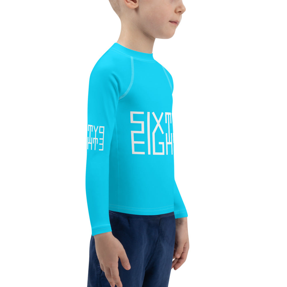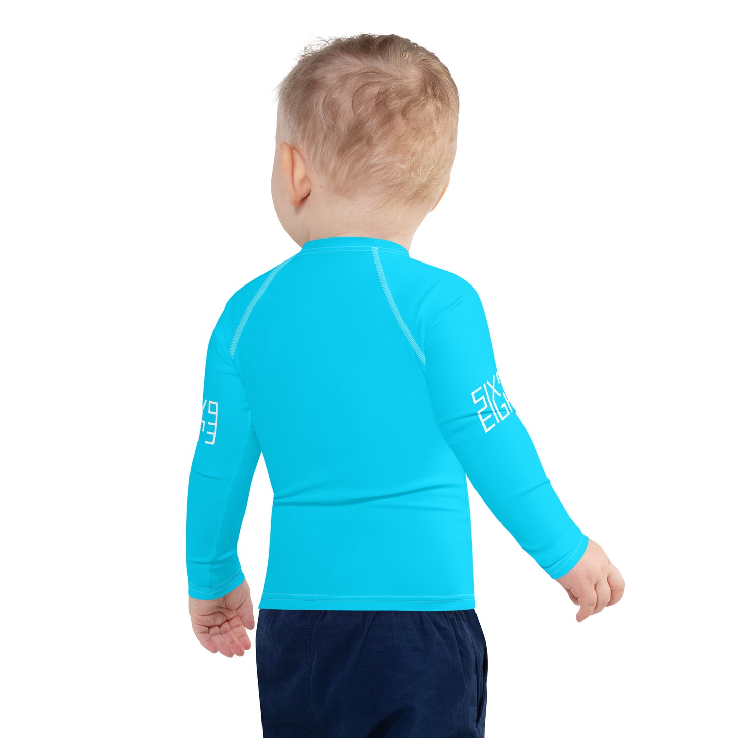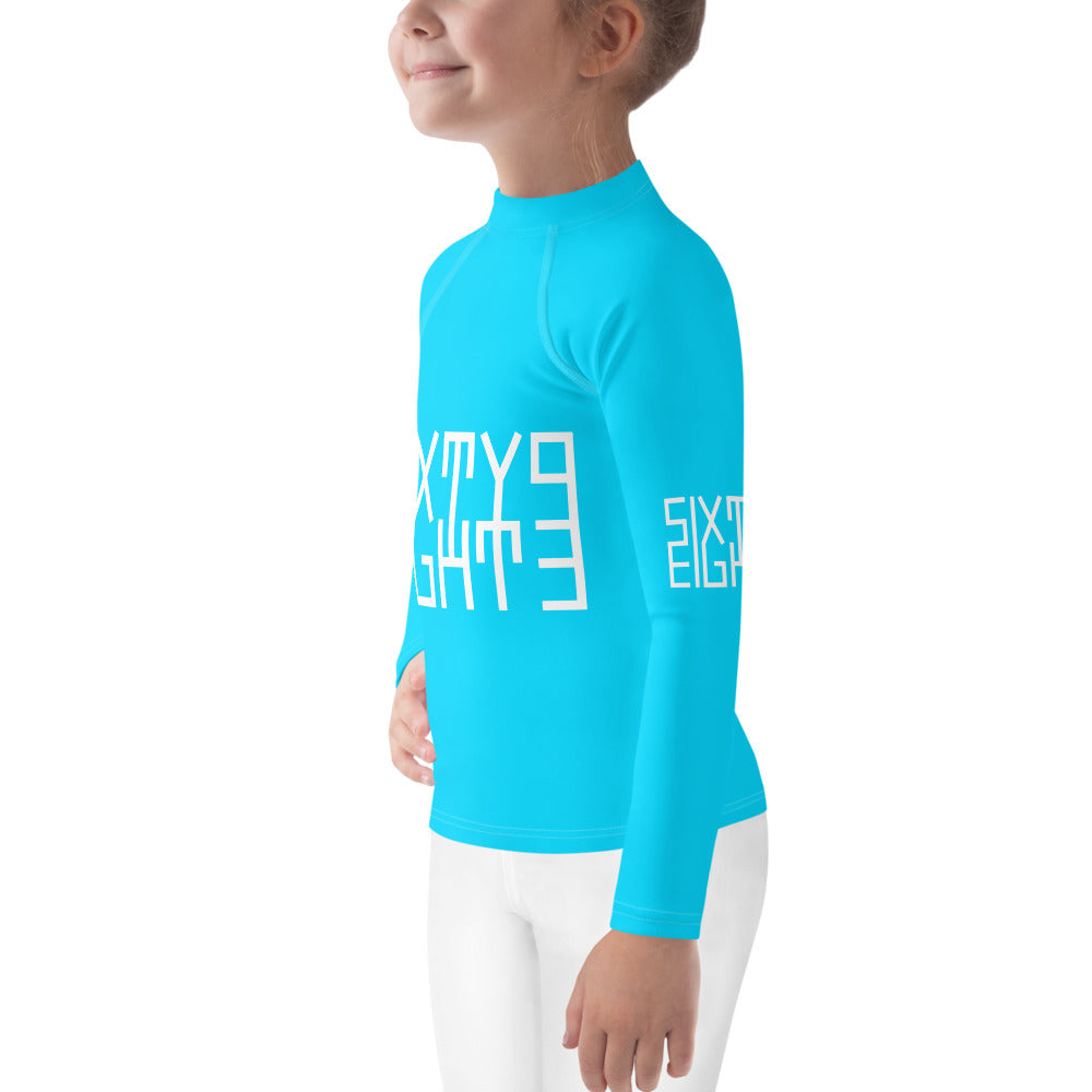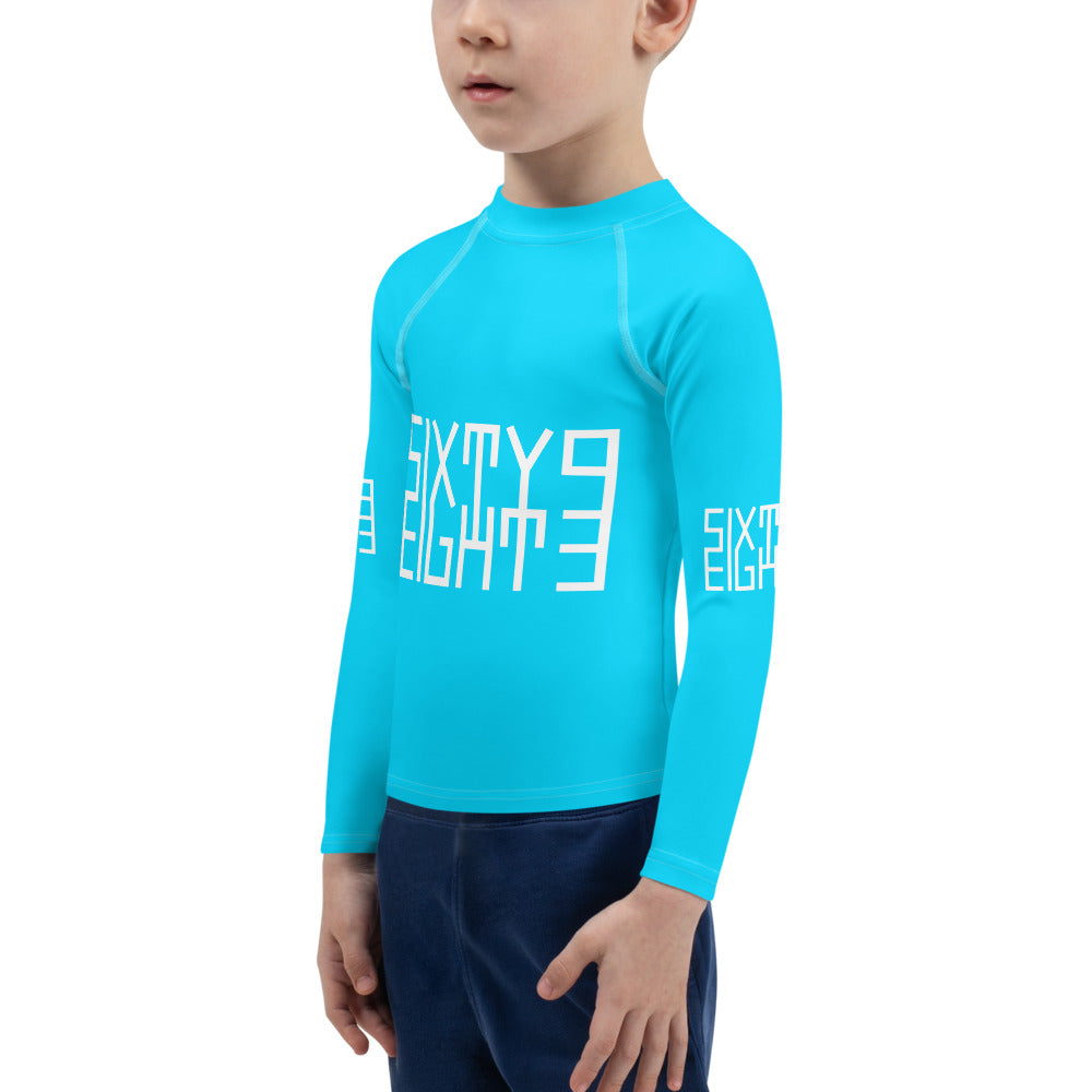 Sixty Eight 93 Logo White & Aqua Blue Kids Rash Guard
