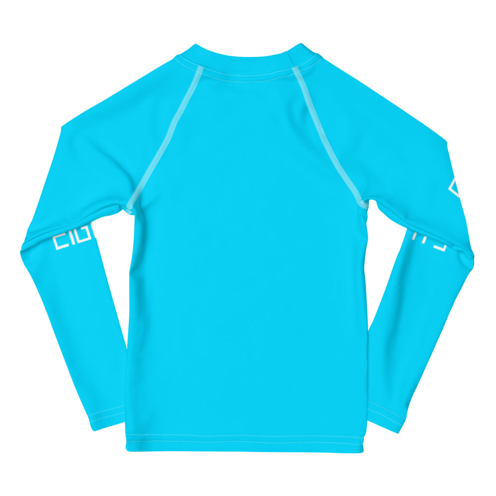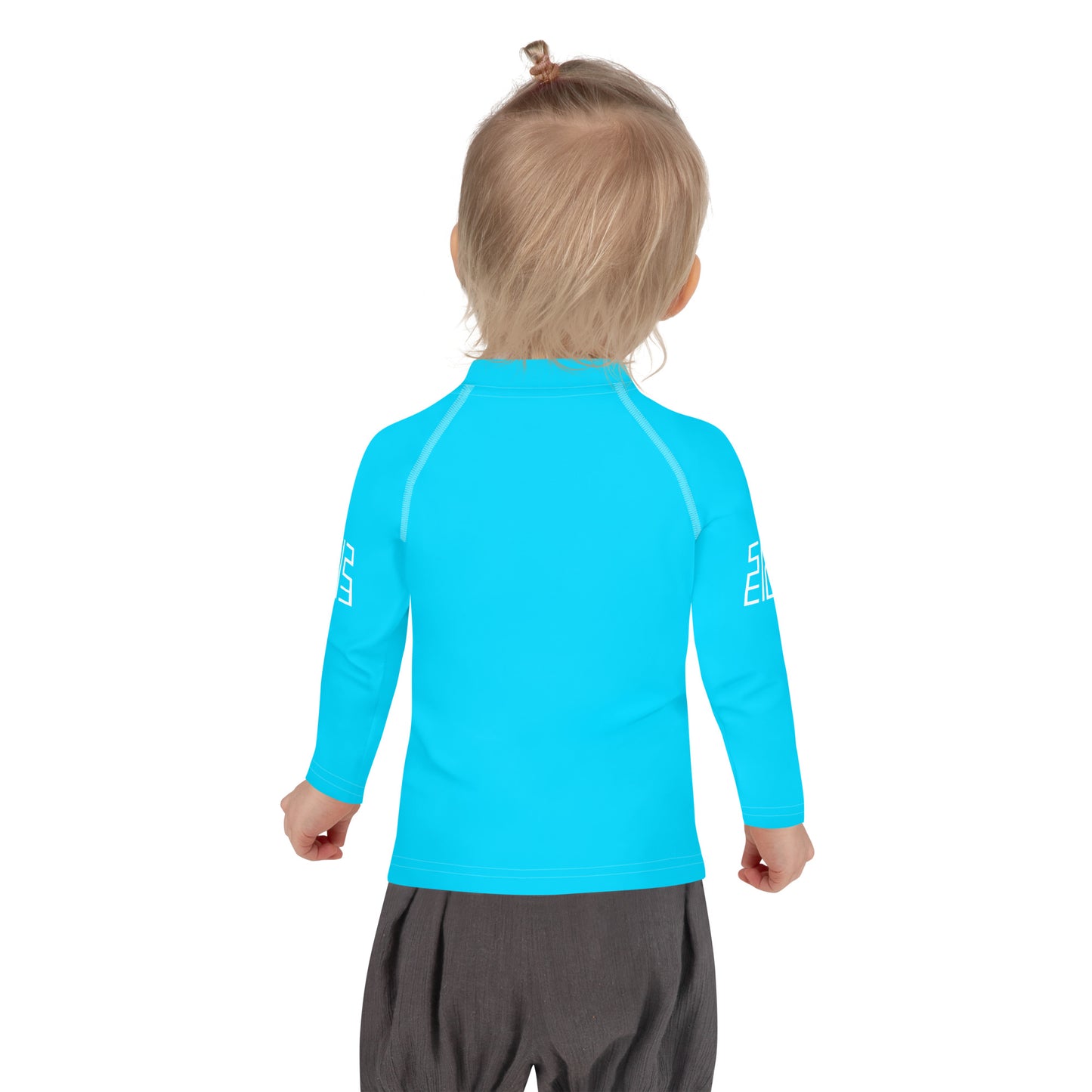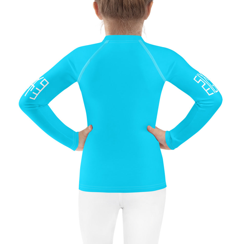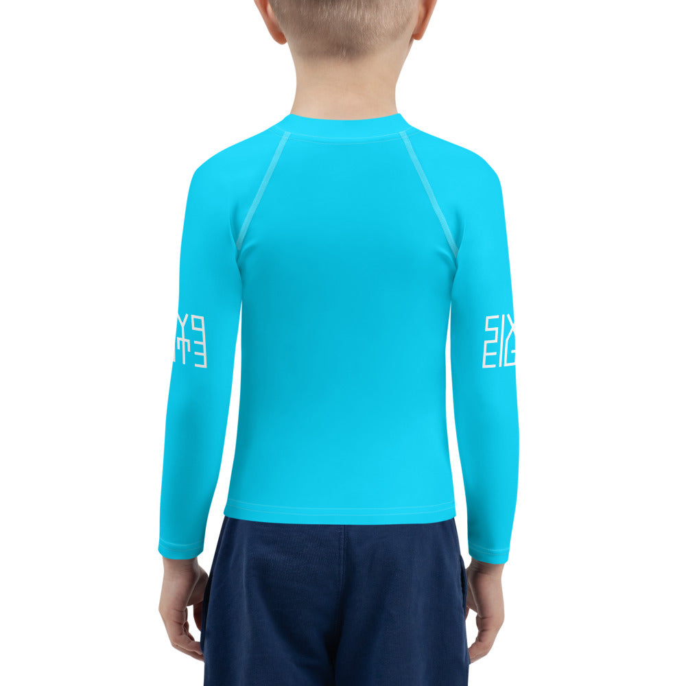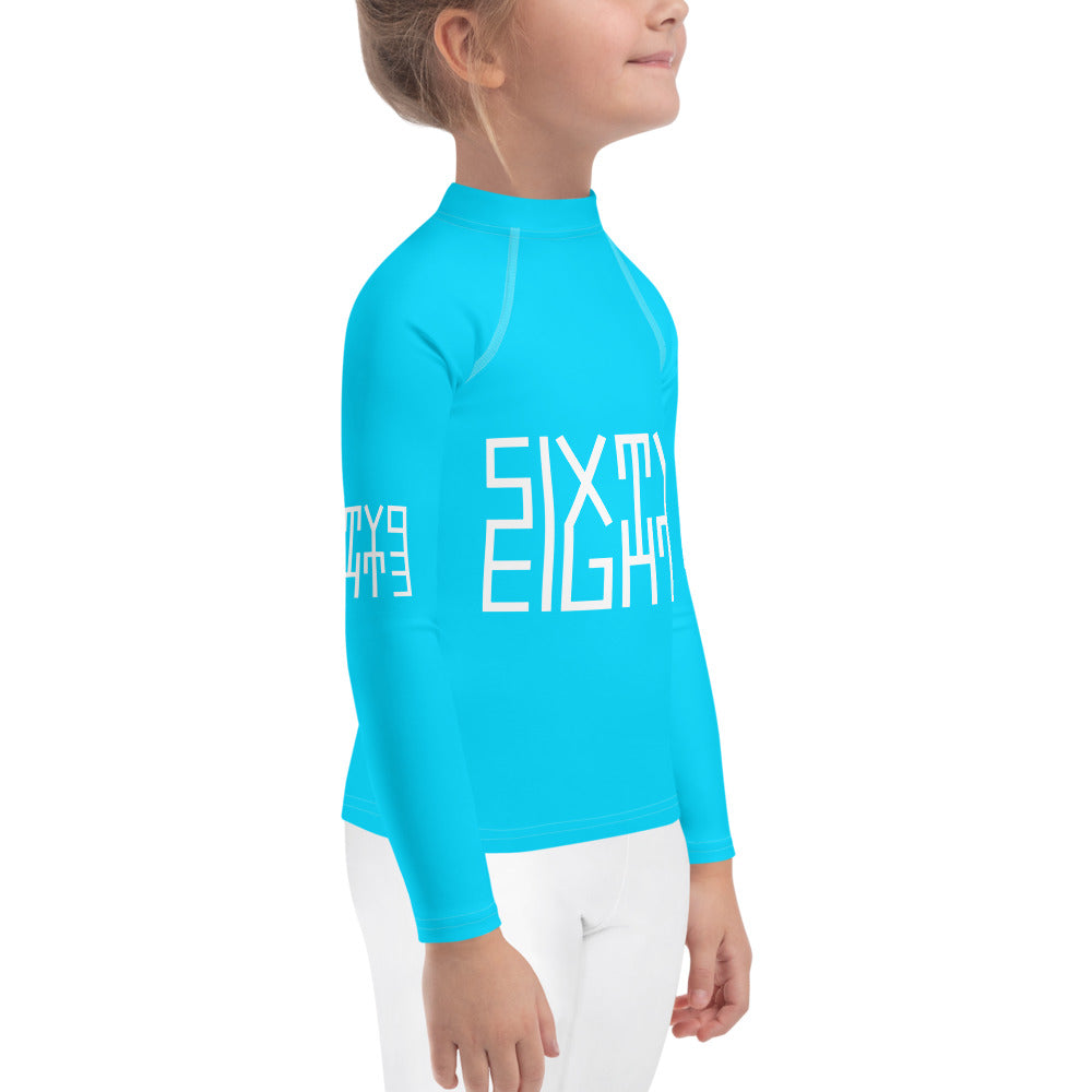 Sixty Eight 93 Logo White & Aqua Blue Kids Rash Guard