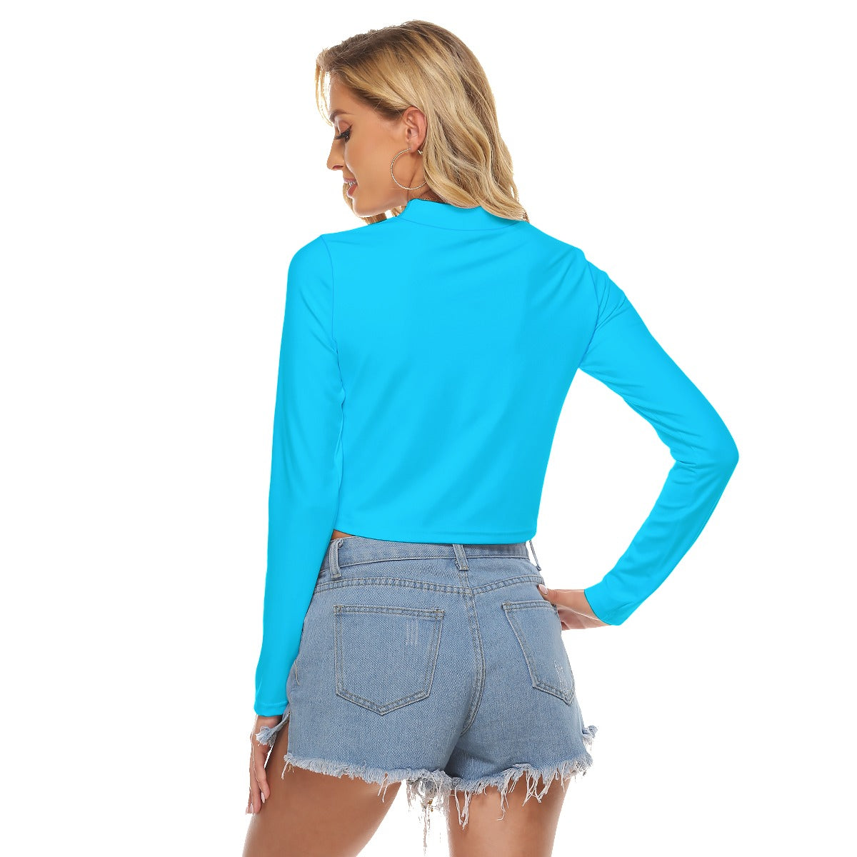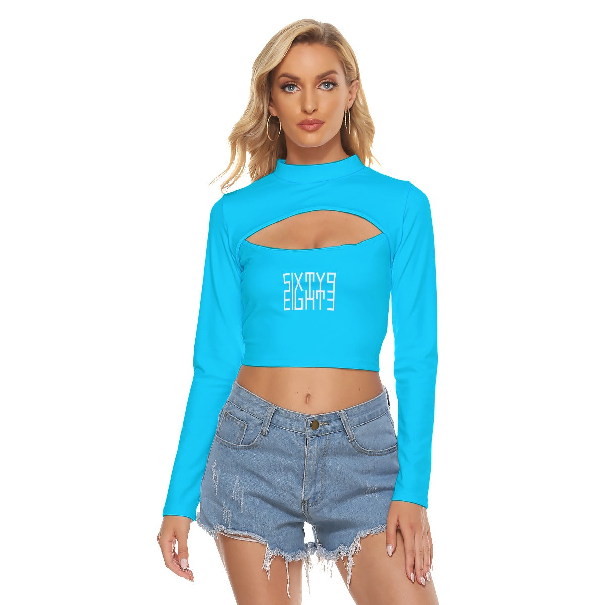 Sixty Eight 93 Logo White Aqua Blue Women's Hollow Chest Keyhole Tight Crop Top