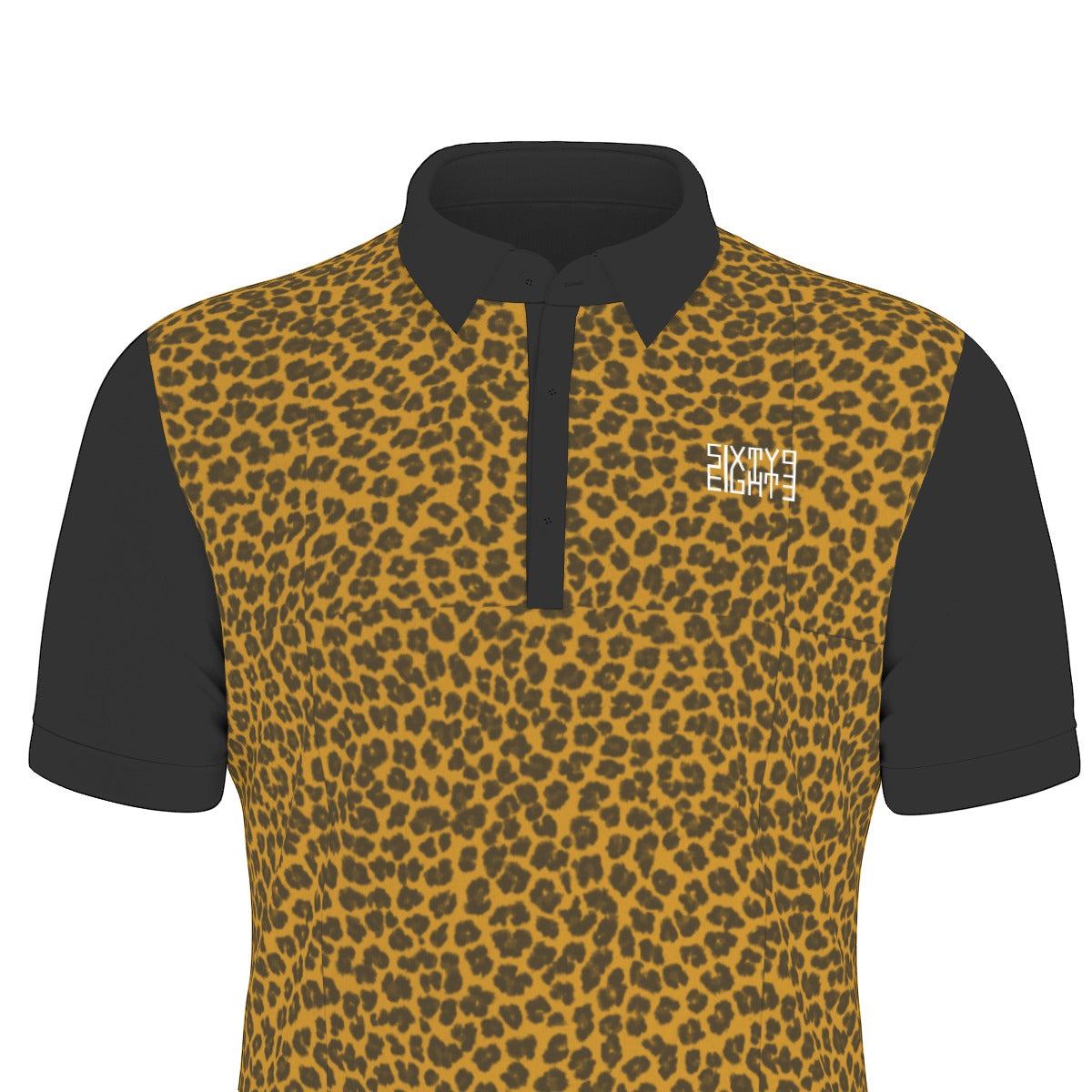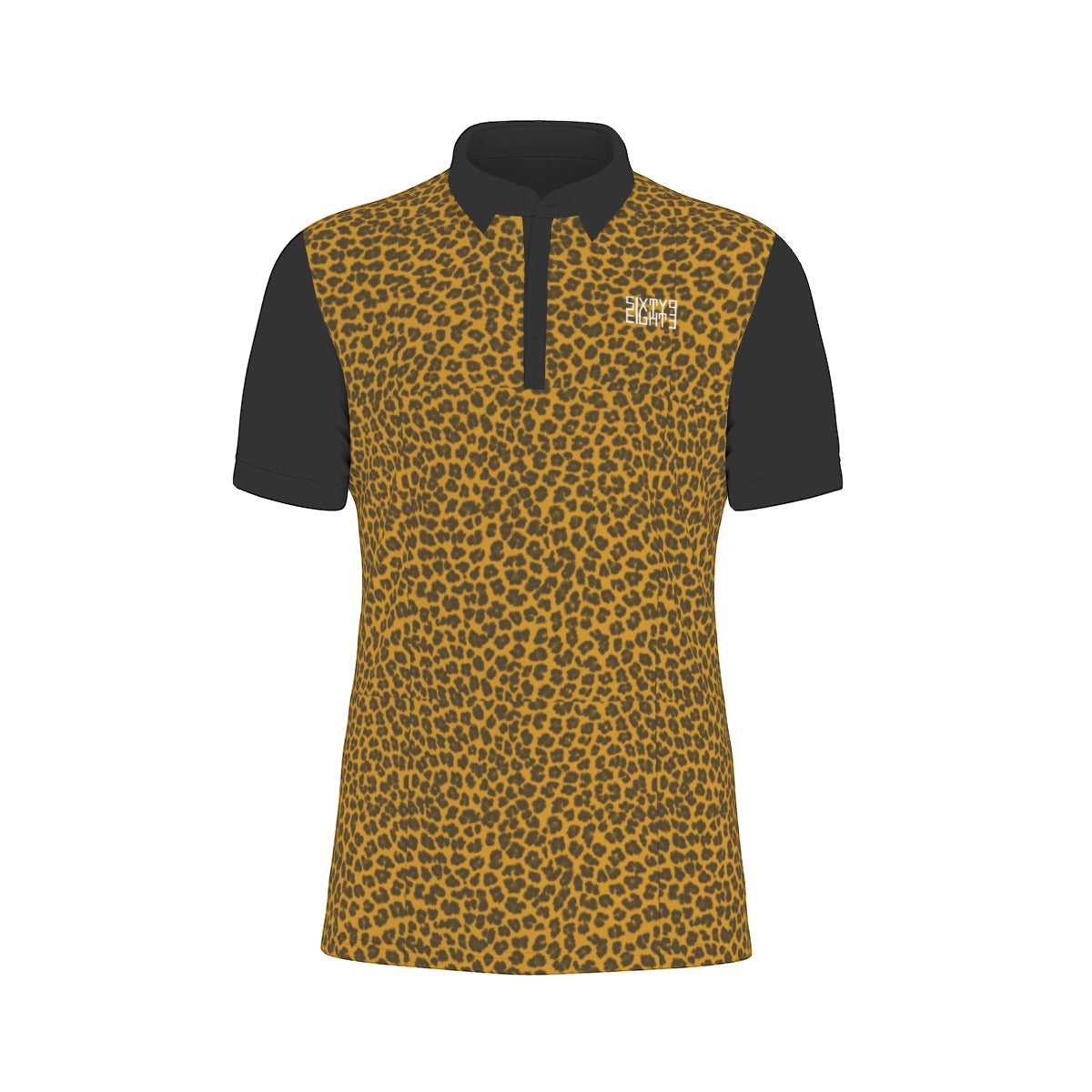 Sixty Eight 93 Logo White Black Cheetah Orange Men's Stretch Polo Shirt