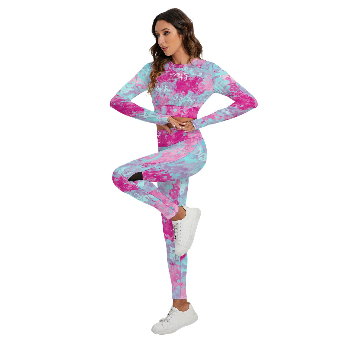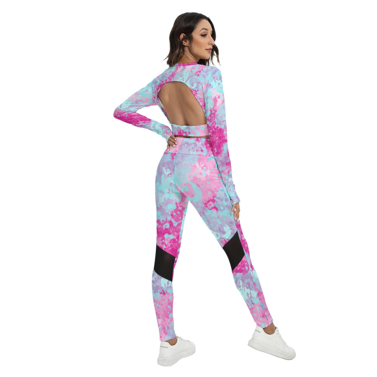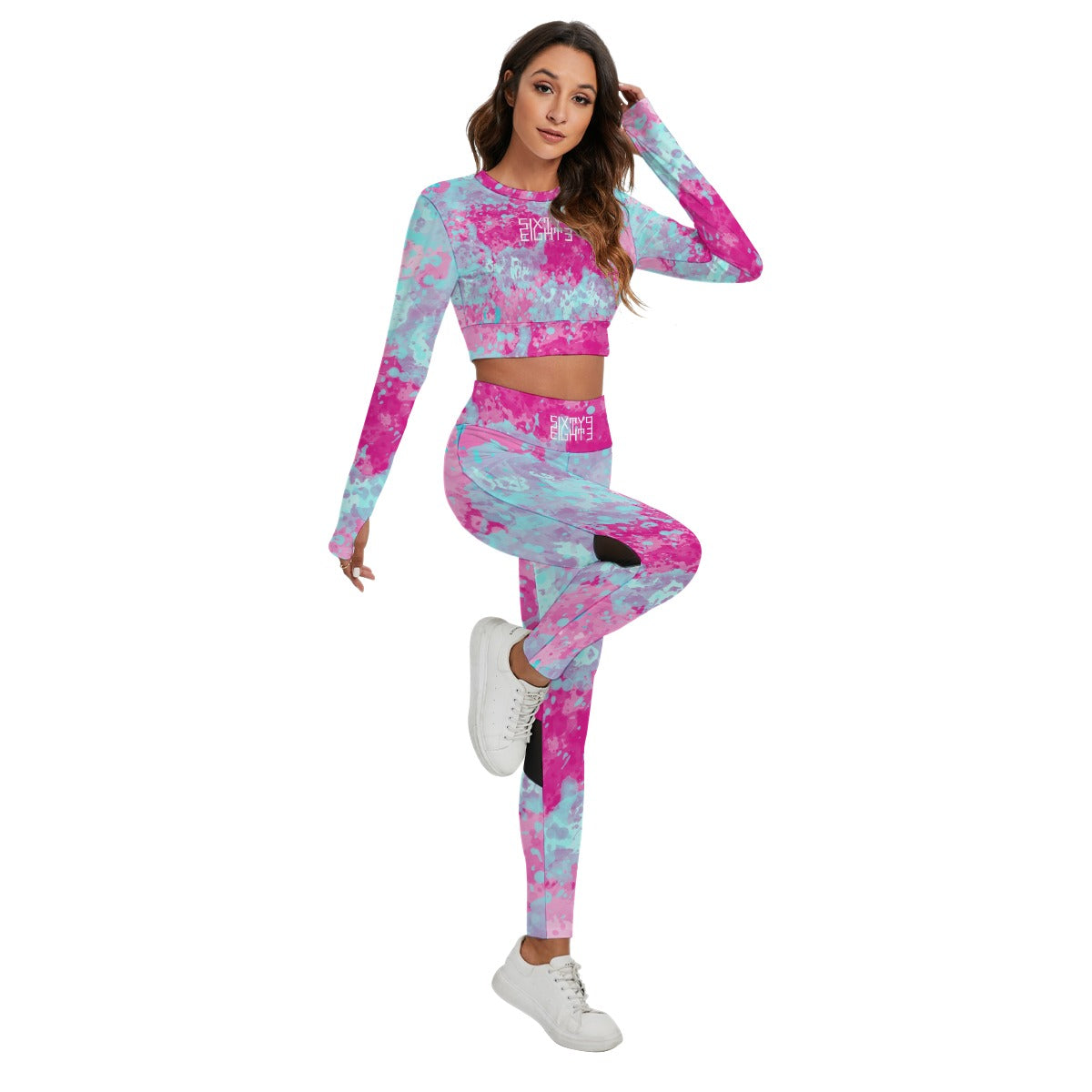 Sixty Eight 93 Logo White Blue Raspberry Women's Sport Set With Backless Top And Leggings