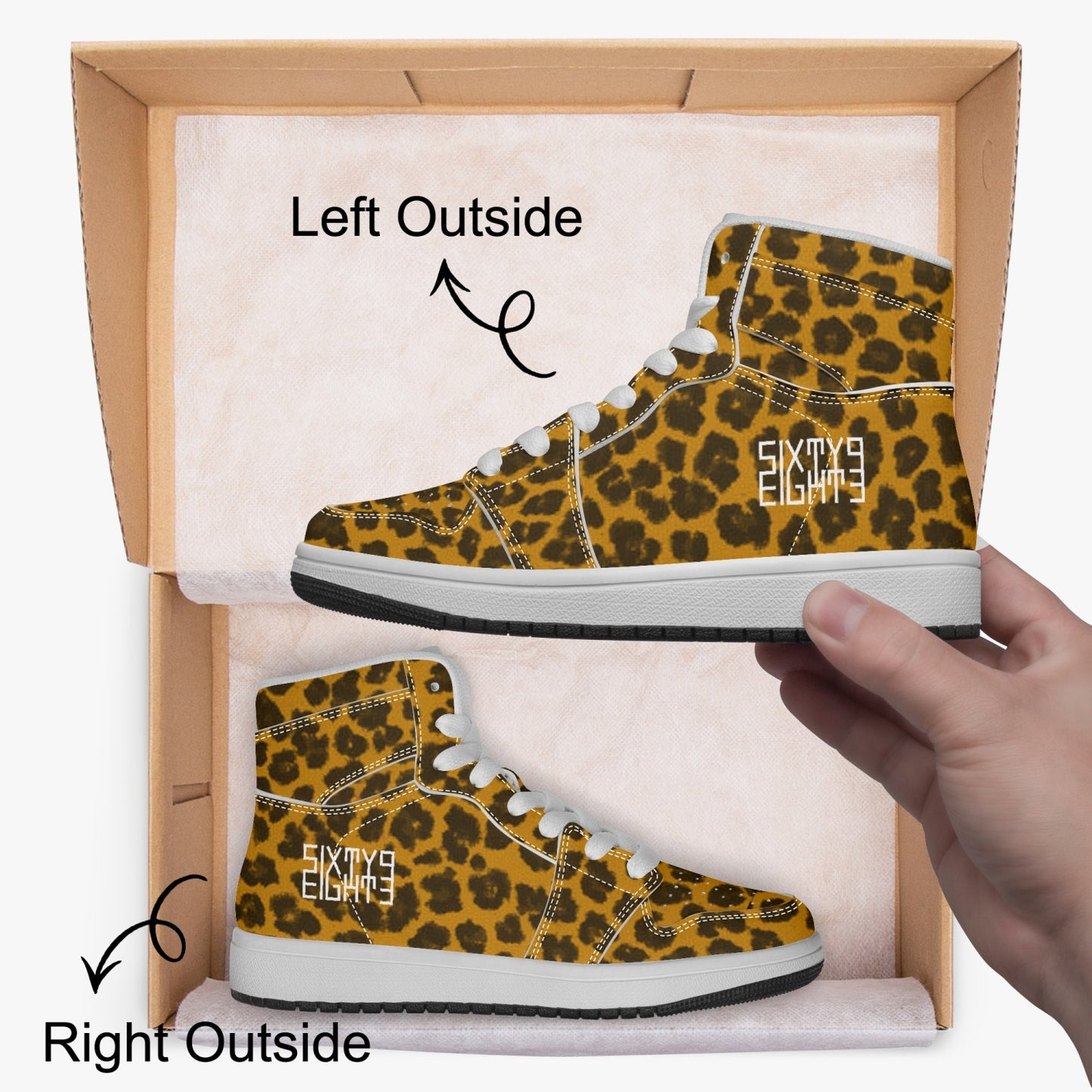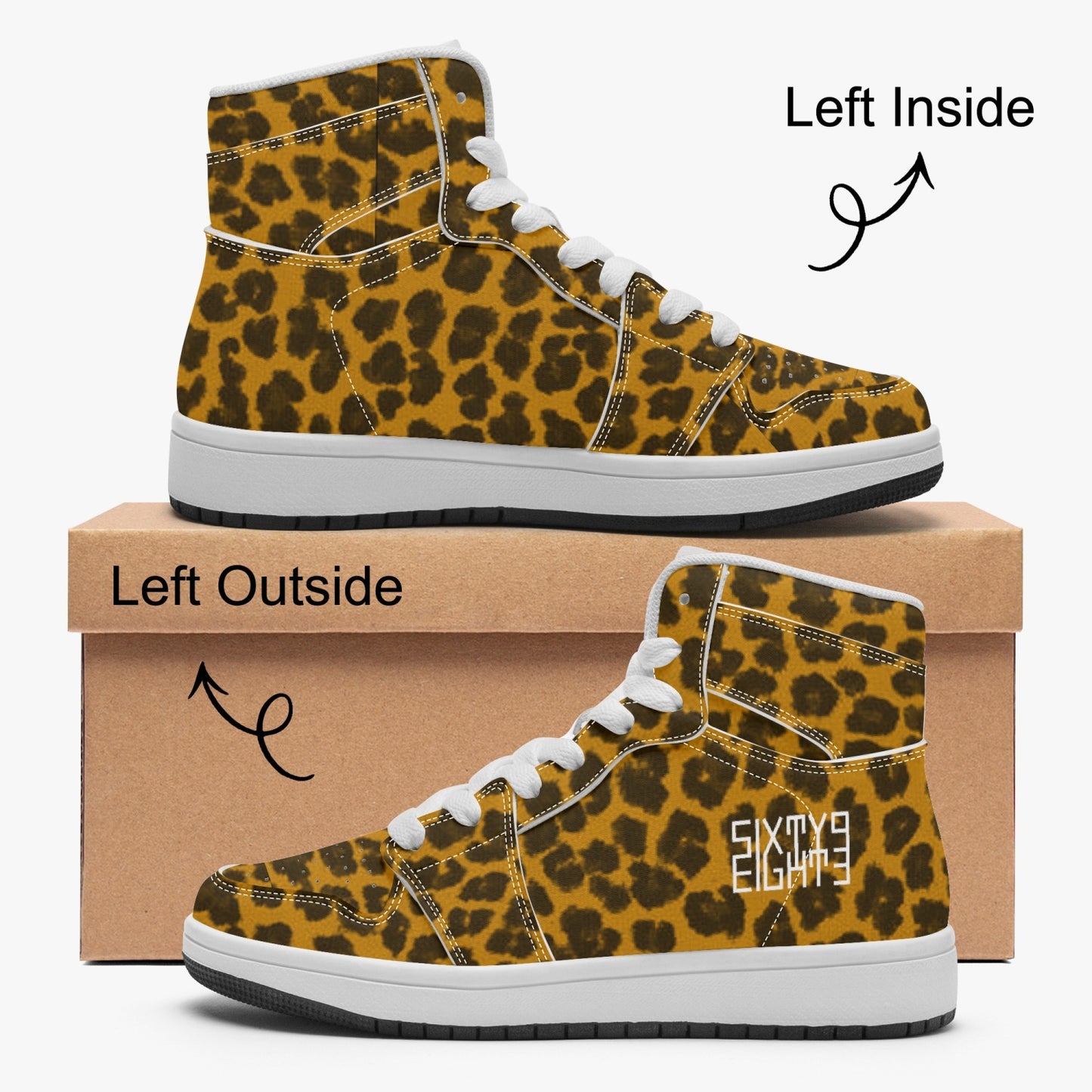 Unleash your little one's wild side with our Sixty Eight 93 Logo White Cheetah Orange Kid High-Top Shoes. Crafted from luxurious PU leather, these unisex shoes feature bold cheetah orange accents and are designed for both style and comfort. The rubber soles offer durability while the EVA padded insoles provide cushioned support for their growing feet. Elevate their footwear game with these exclusive, high-end shoes.