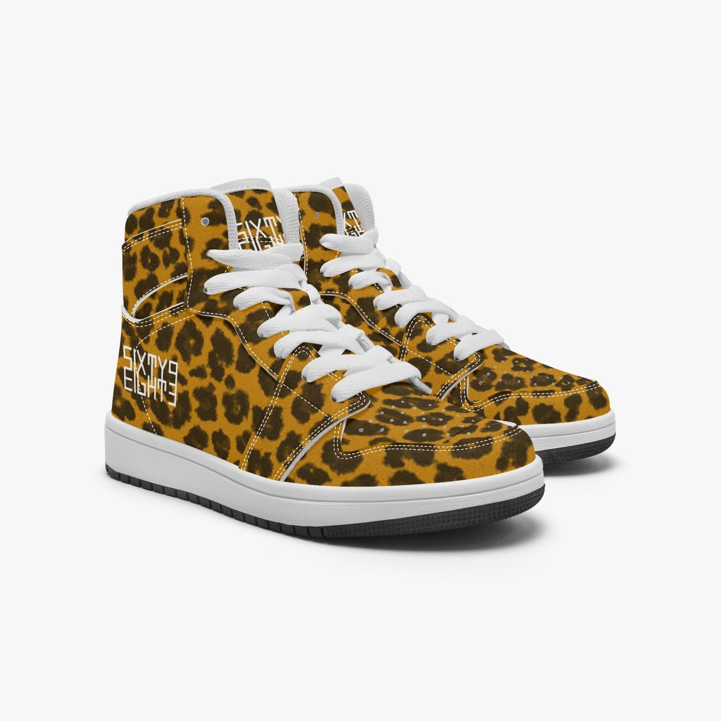 Sixty Eight 93 Logo White Cheetah Orange Kids High-Top Shoes