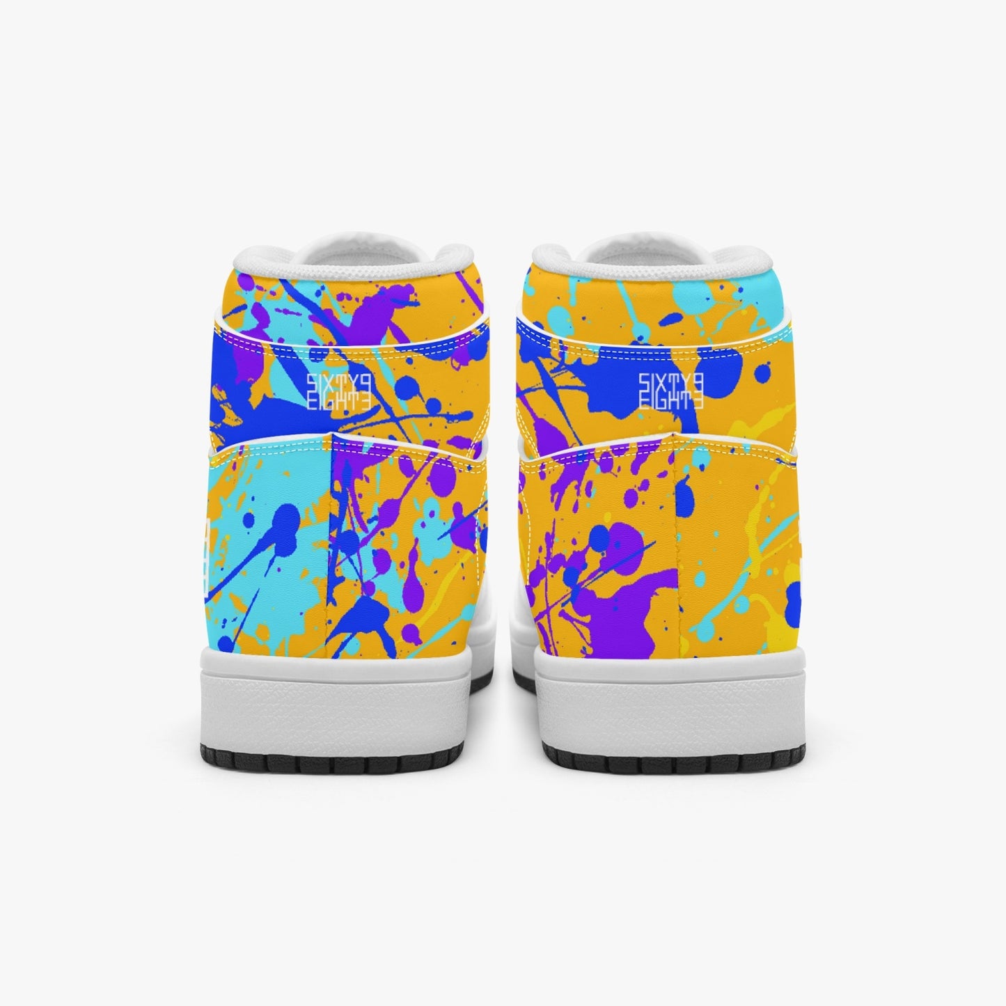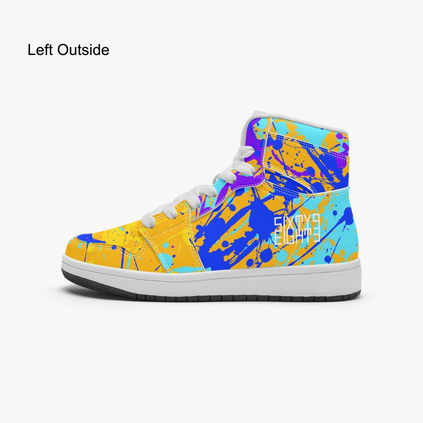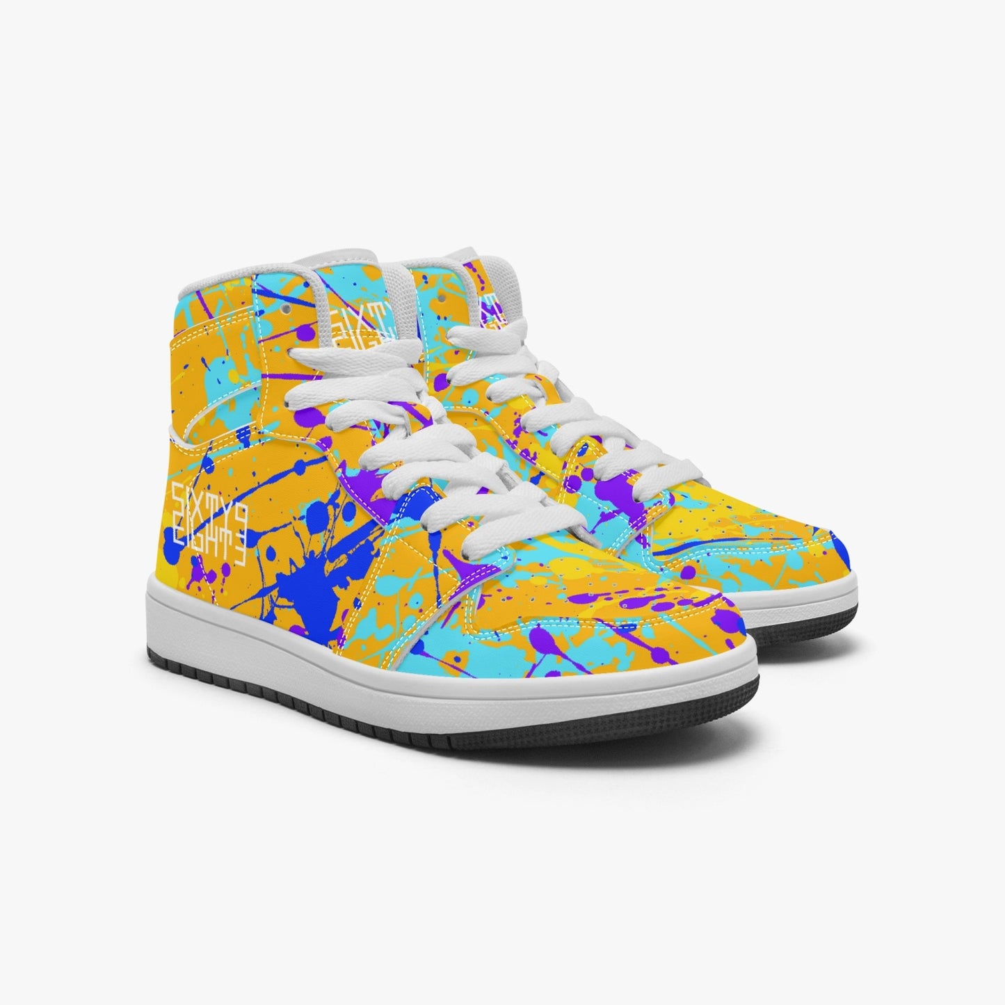 Indulge your child's sense of style with our Sixty Eight 93 Logo White Drip #12 high-top shoes. Unisex and adorned with our signature drip design, these shoes feature EVA padded insoles and PU leather for comfort and durability. The rubber soles provide grip and support for your little one's adventures. Elevate their look and comfort with these premium shoes.