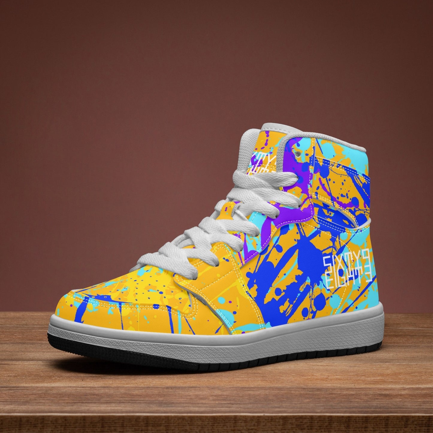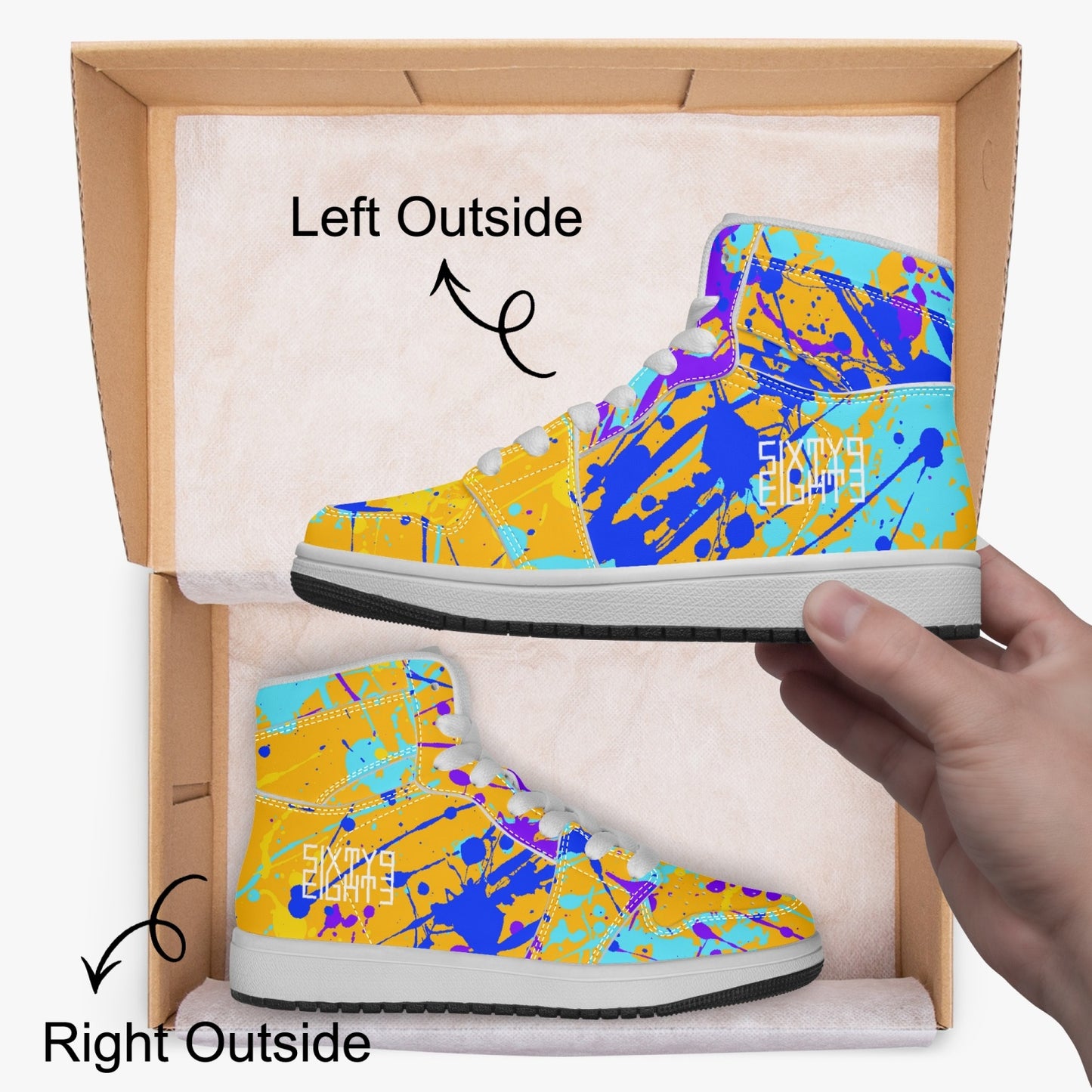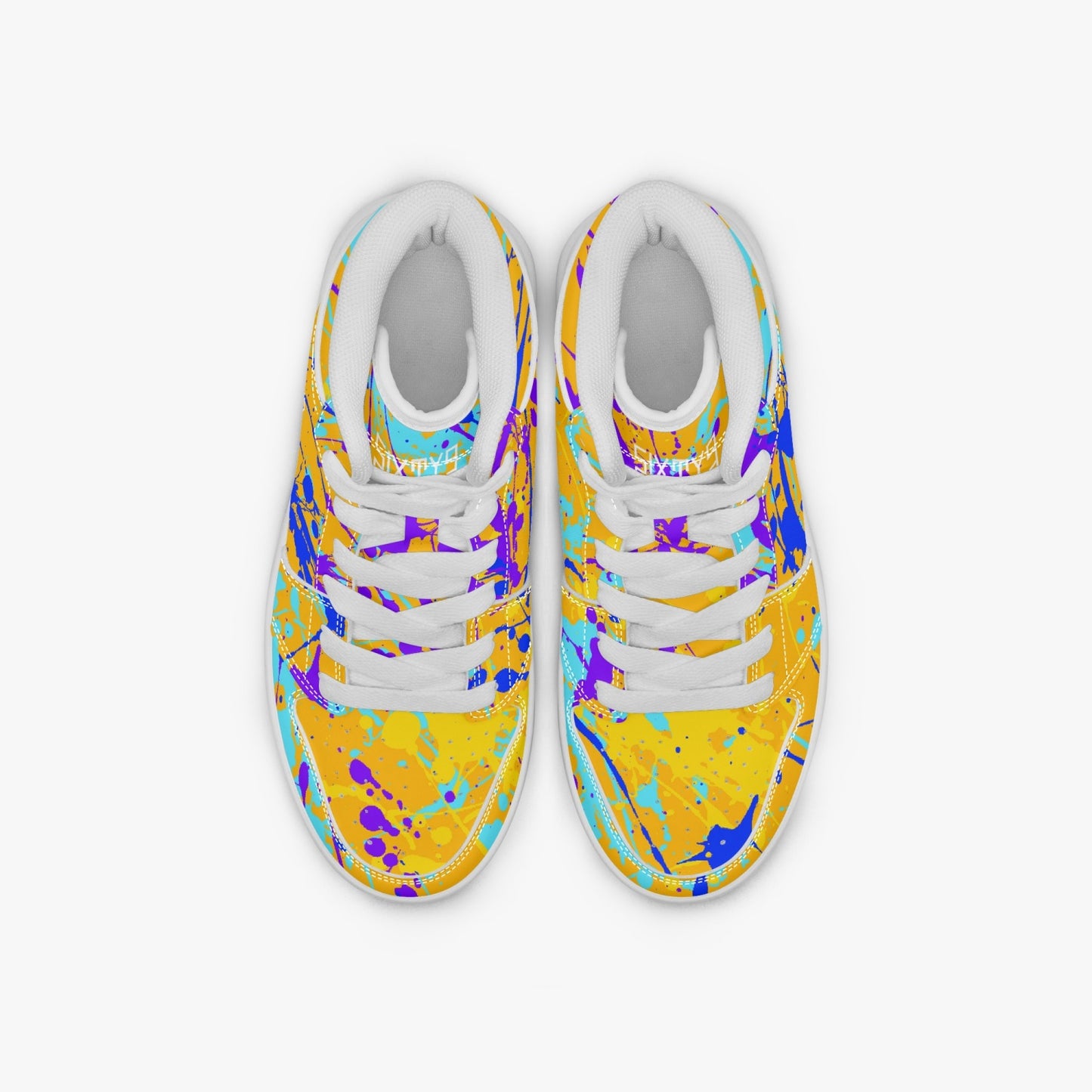 Indulge your child's sense of style with our Sixty Eight 93 Logo White Drip #12 high-top shoes. Unisex and adorned with our signature drip design, these shoes feature EVA padded insoles and PU leather for comfort and durability. The rubber soles provide grip and support for your little one's adventures. Elevate their look and comfort with these premium shoes.