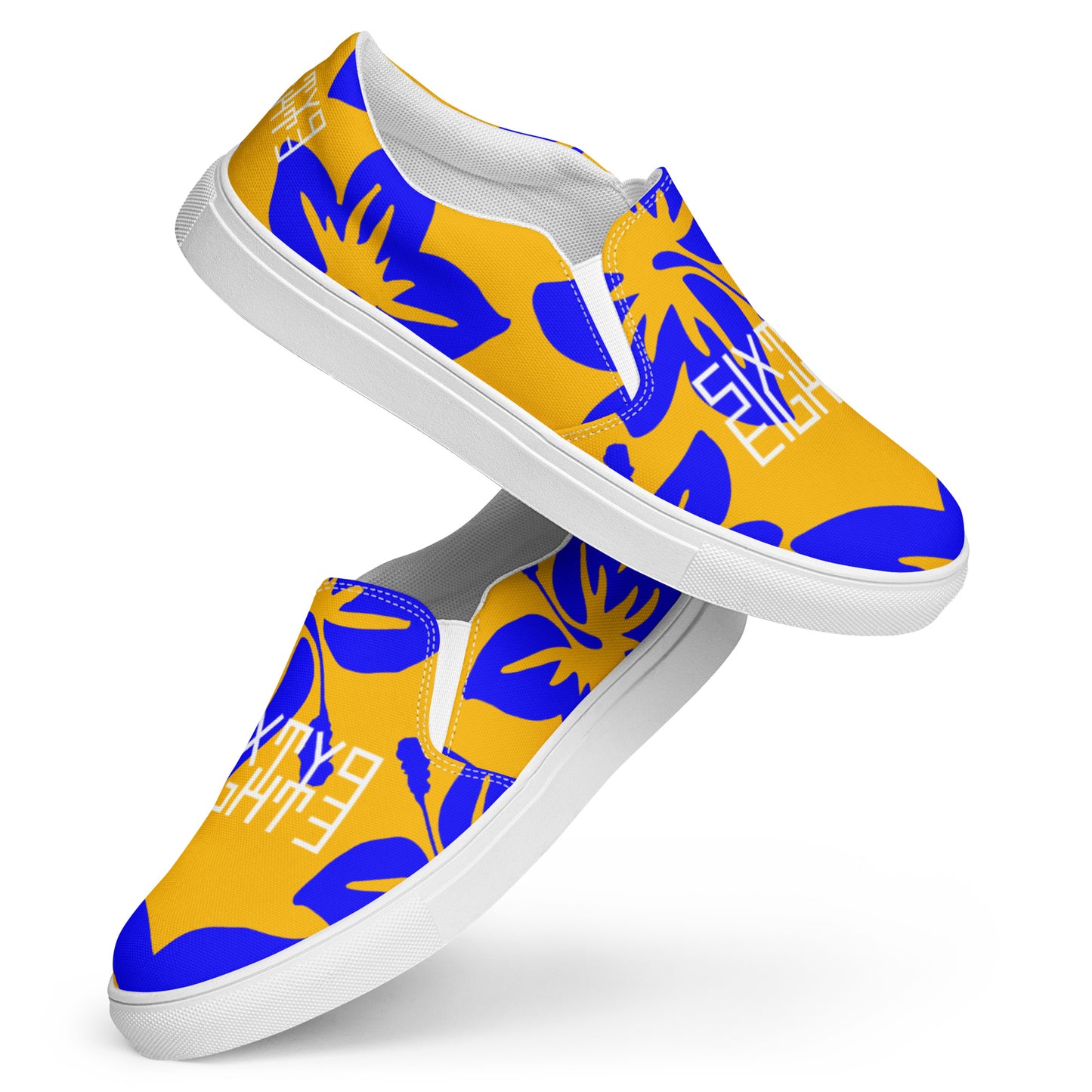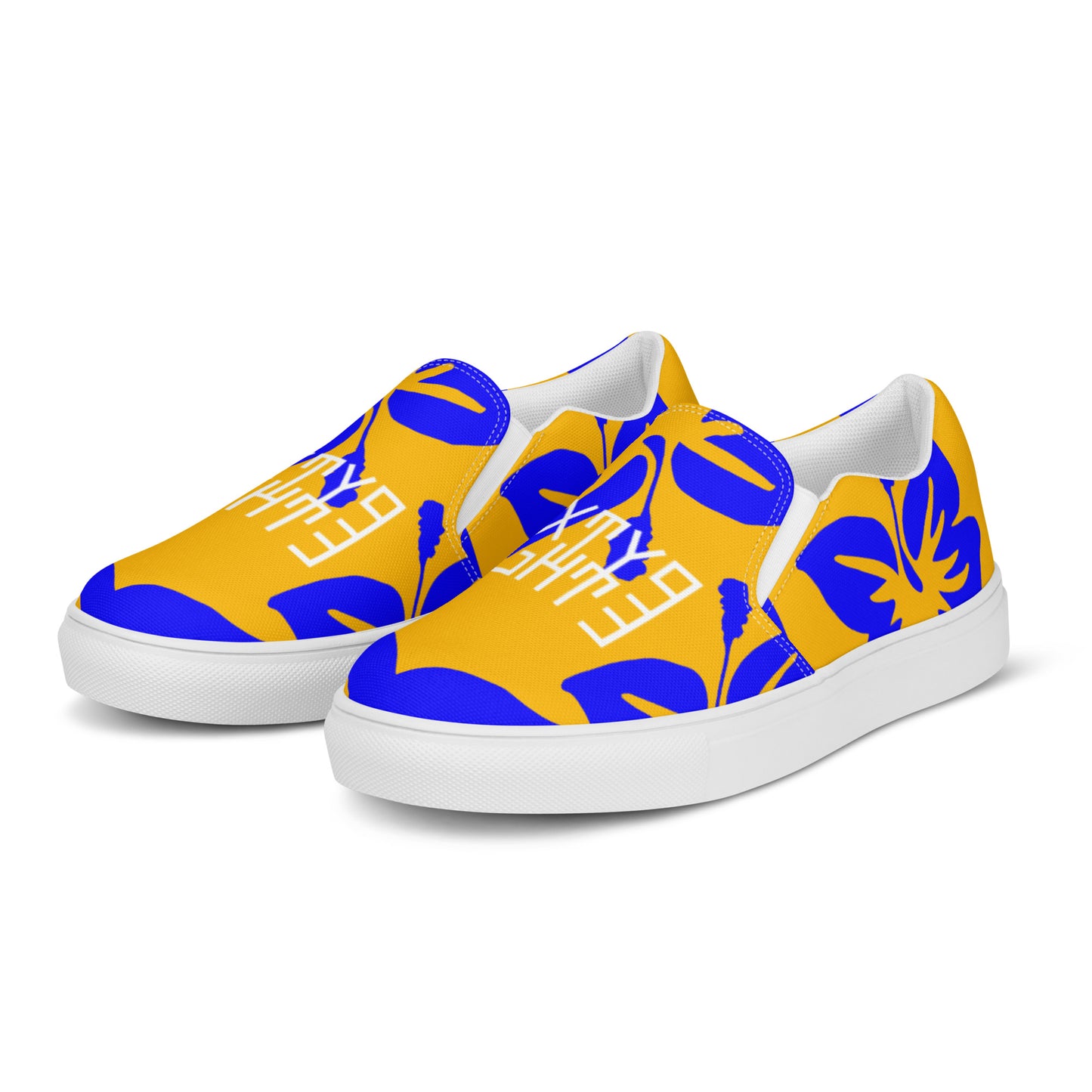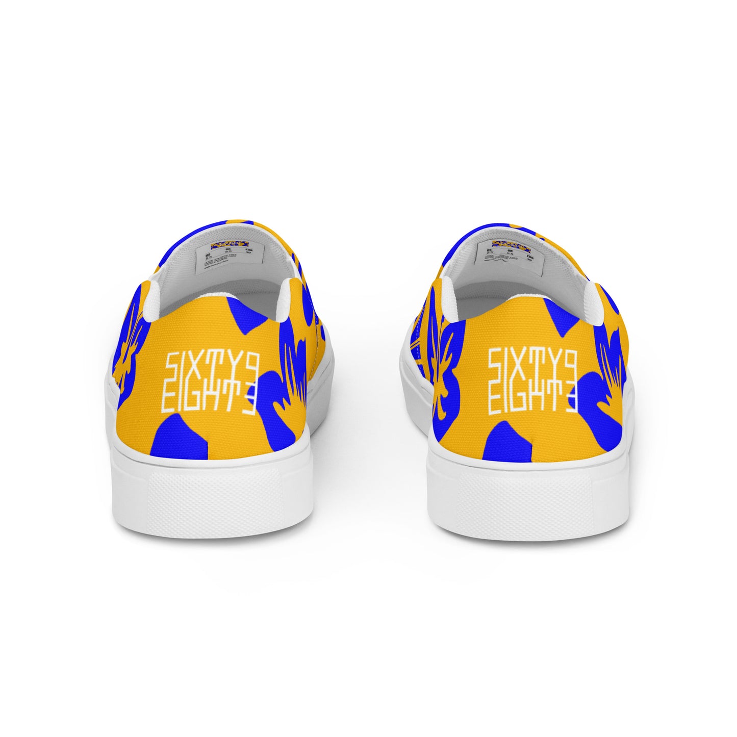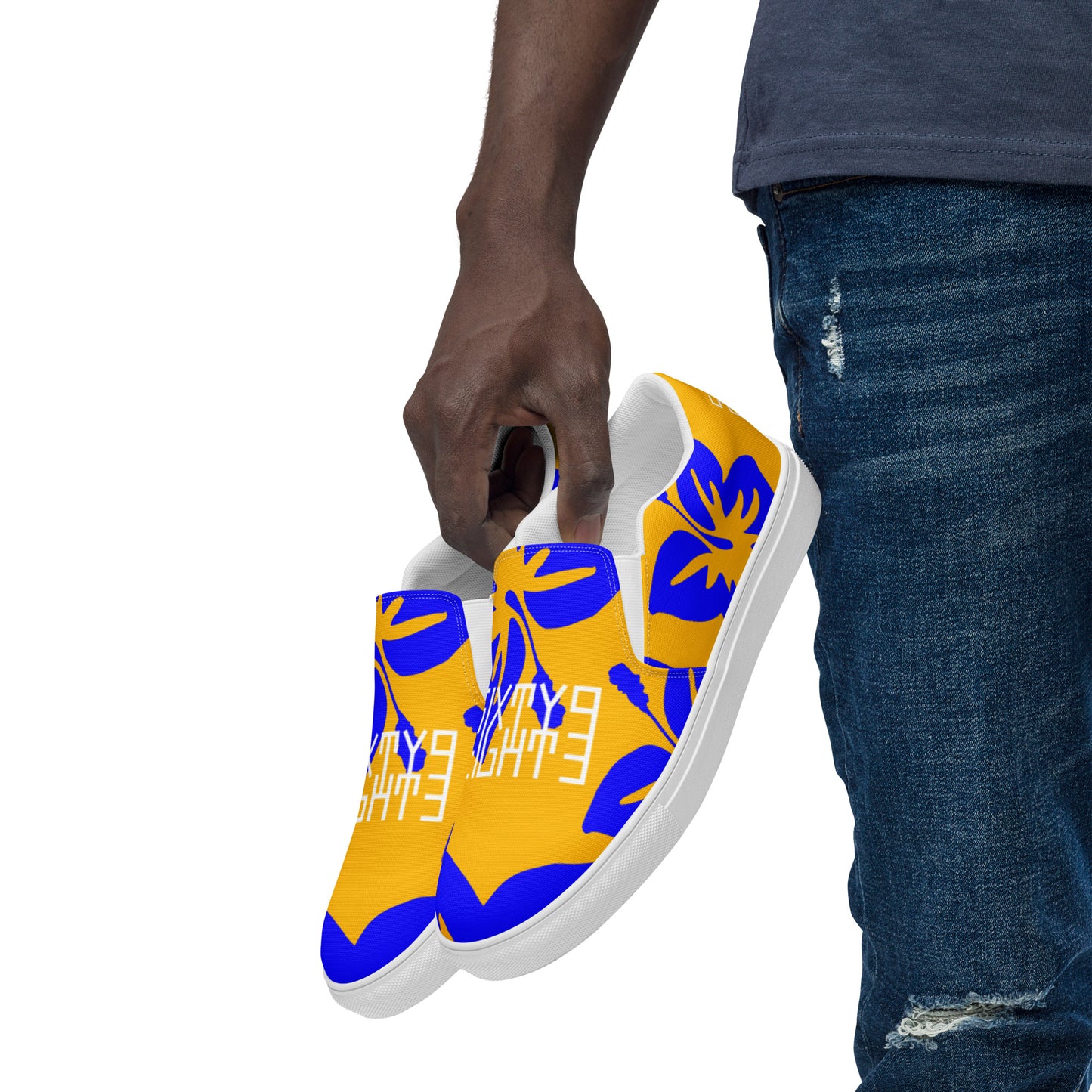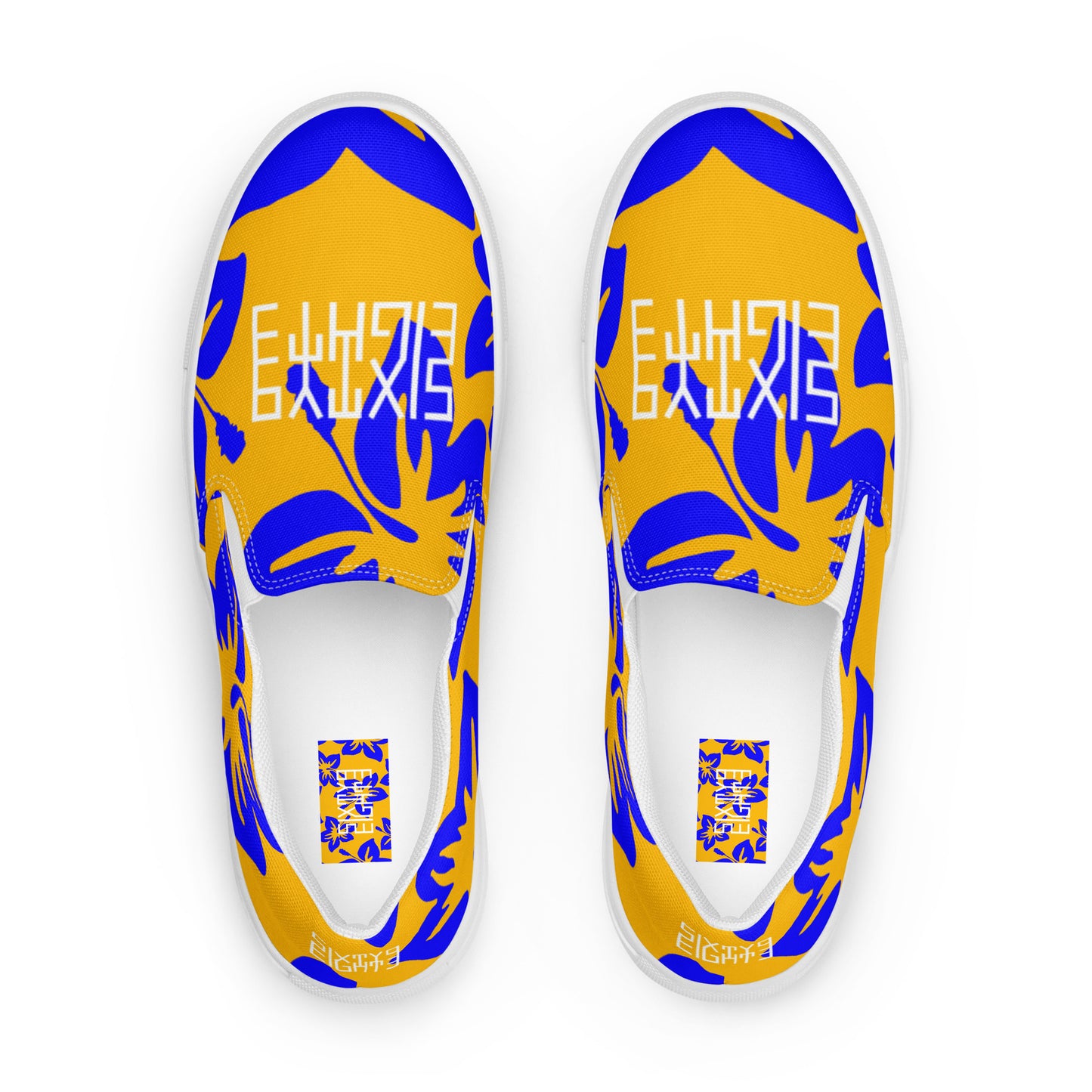 Sixty Eight 93 Logo White Hibiscus Blue & Orange Men's Slip On Shoes