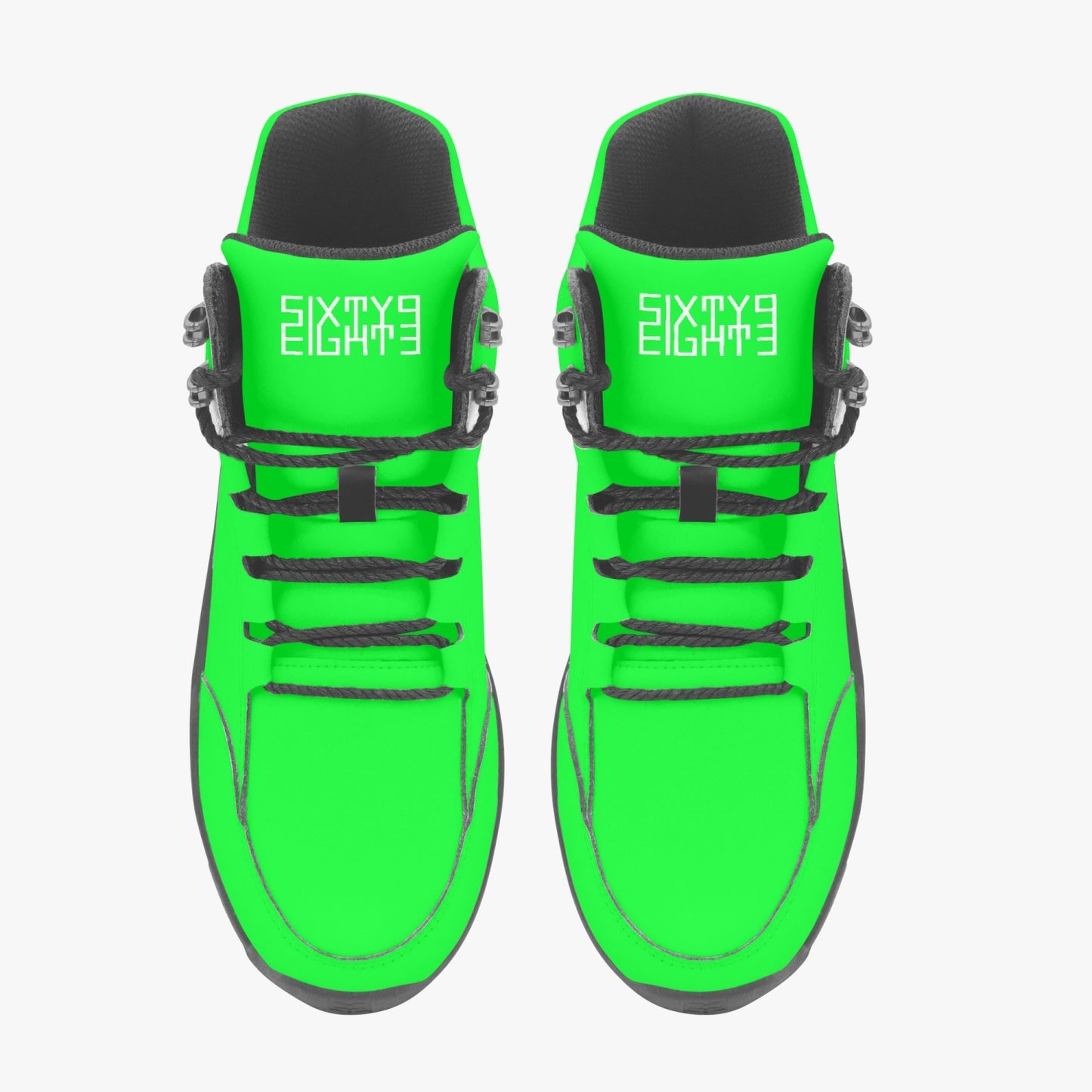 Elevate your shoe game with our Sixty Eight 93 Logo White Lime Green High Top Boots. The vibrant lime green color and sleek lace enclosure make a bold statement while the rubber sole provides comfort and durability. Perfect for both men and women, these boots are a must-have for the fashion-forward individual.