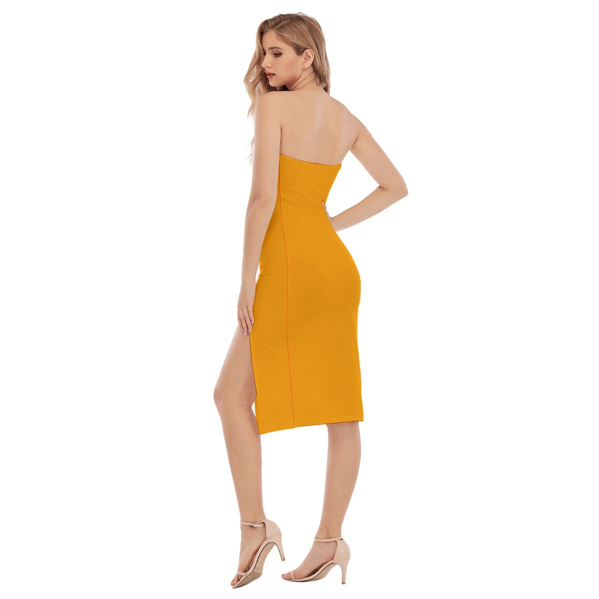 Sixty Eight 93 Logo White Orange Women's Side Split Tube Top Dress