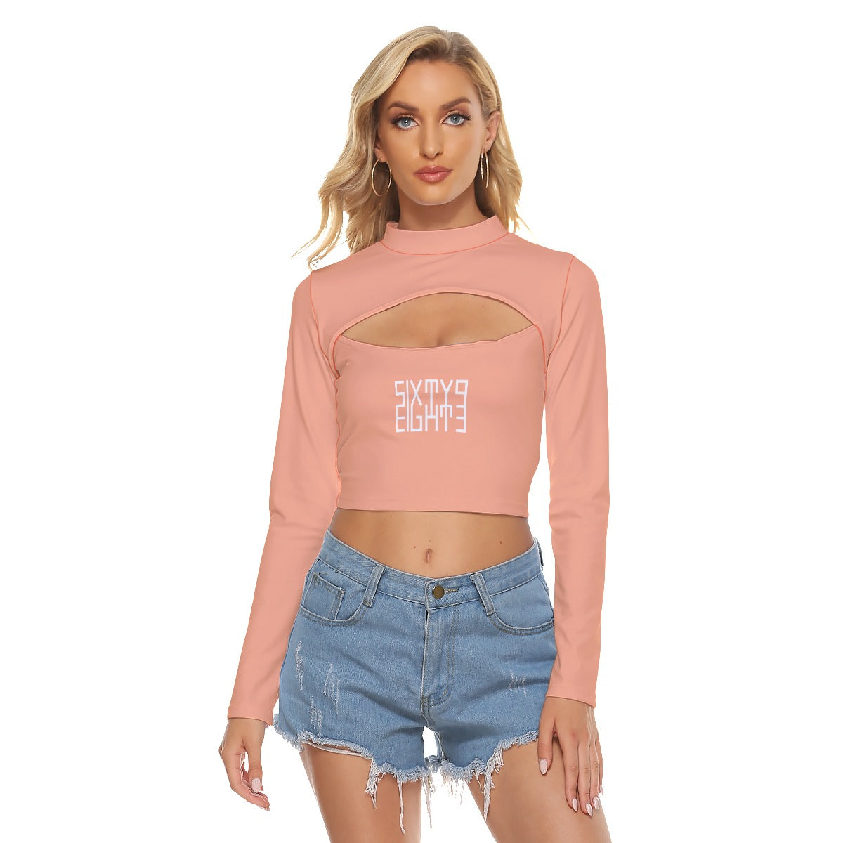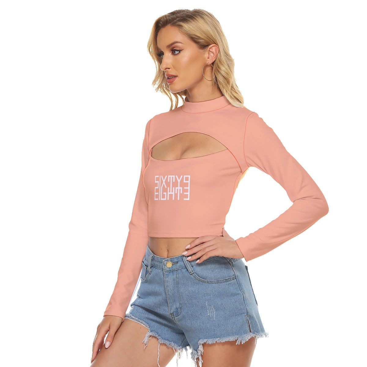 Sixty Eight 93 Logo White Peach Women's Hollow Chest Keyhole Tight Crop Top