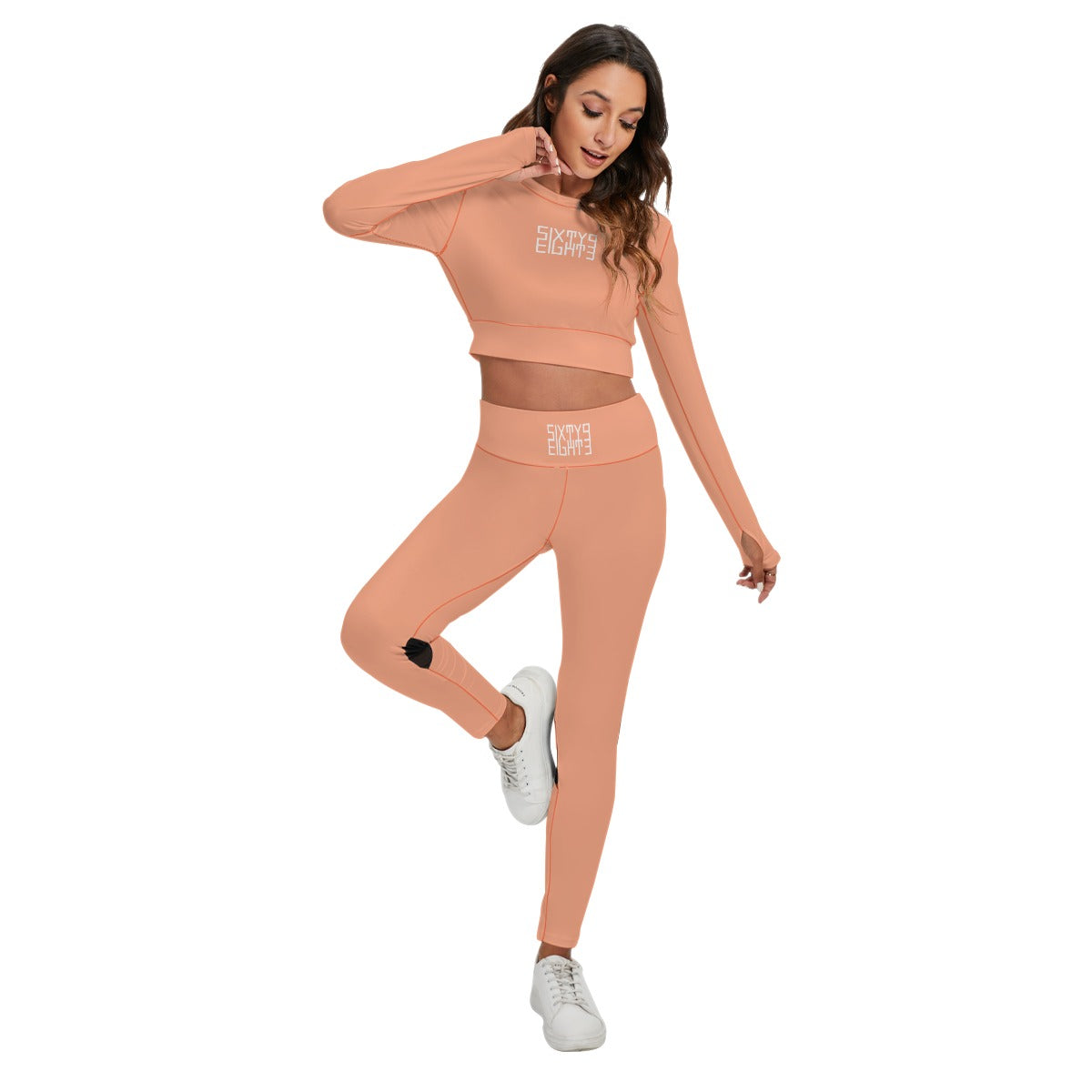 Indulge in luxury with our Sixty Eight 93 Logo White Peach Women's Sport Set. Crafted with a sleek peach microfiber, this set features a chic backless top and comfortable leggings. Elevate your workout routine with this exclusive and sophisticated set.