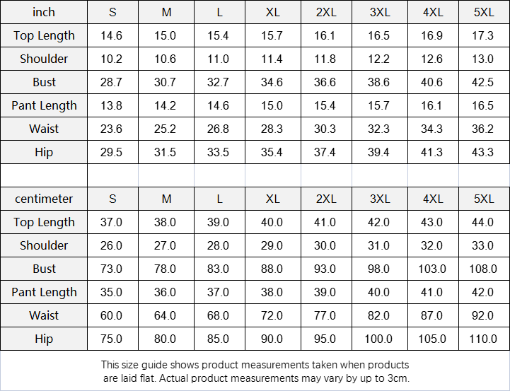| centimeter | S | M | L | XL | 2XL | 3XL | 4XL | 5XL |