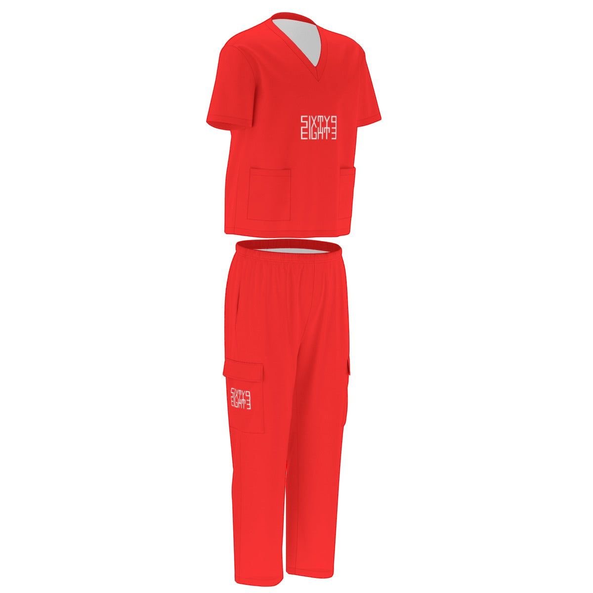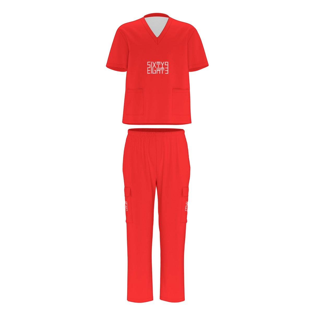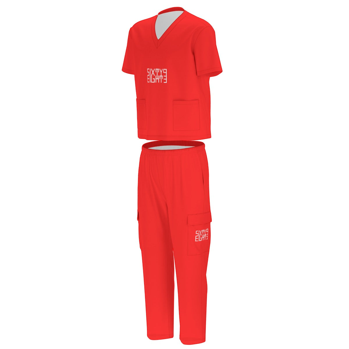 Sixty Eight 93 Logo White Red Unisex Scrub Set With Six Pockets