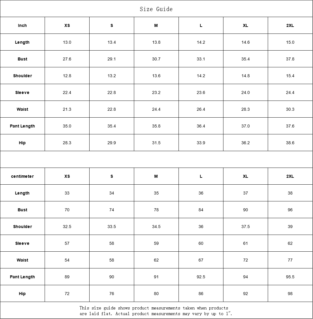This size guide shows product measurements taken when products are laid flat. Actual product measurements may vary by up to 1".