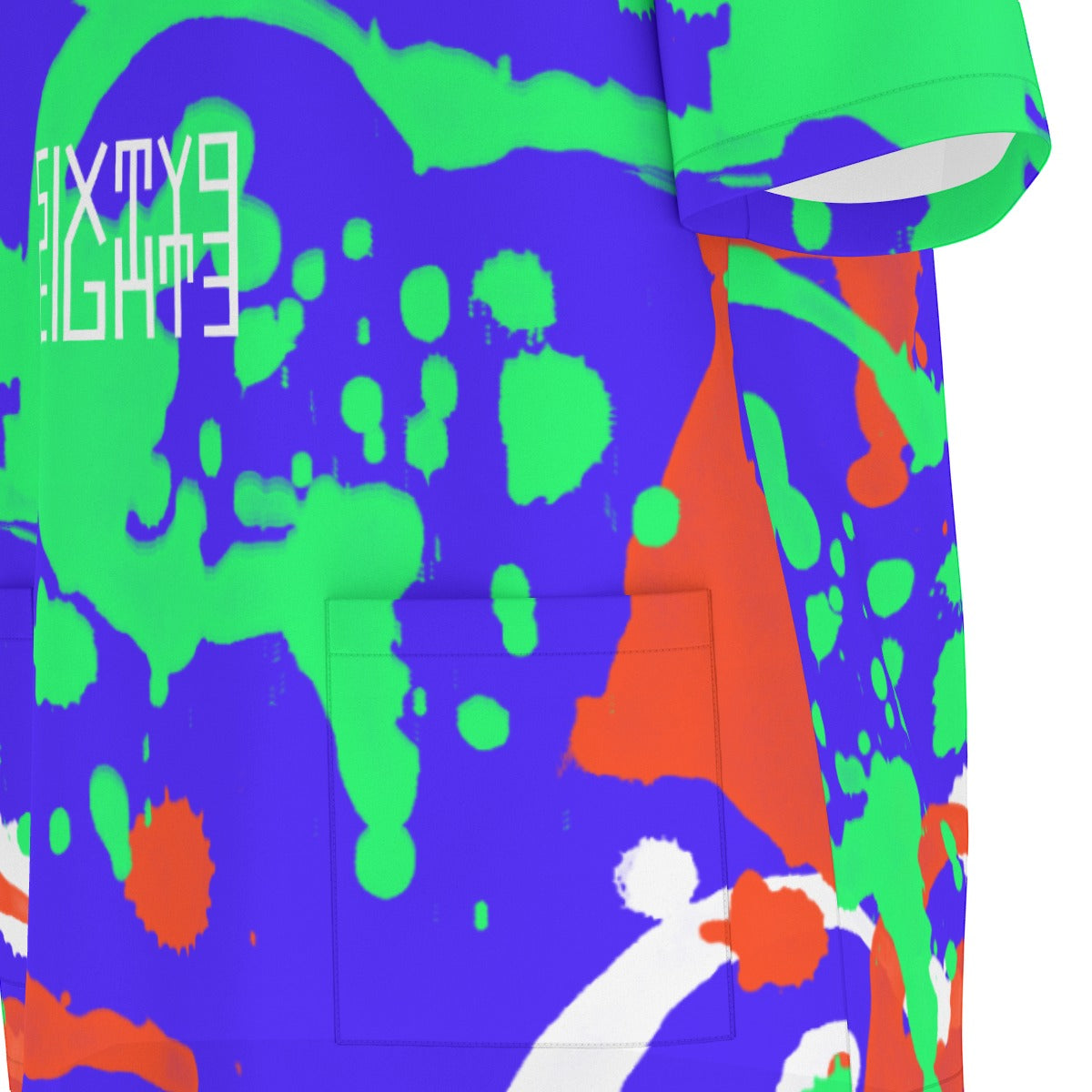 Introducing the Sixty Eight 93 Logo White Splatter #15 Unisex Scrub Set With Six Pockets: a sophisticated and stylishly exclusive medical uniform tailored for superior comfort and practicality. The Splatter #15 design and six pockets make the set a modern and practical addition to any wardrobe. Perfect for medical professionals or those who require a more fashion-forward look.