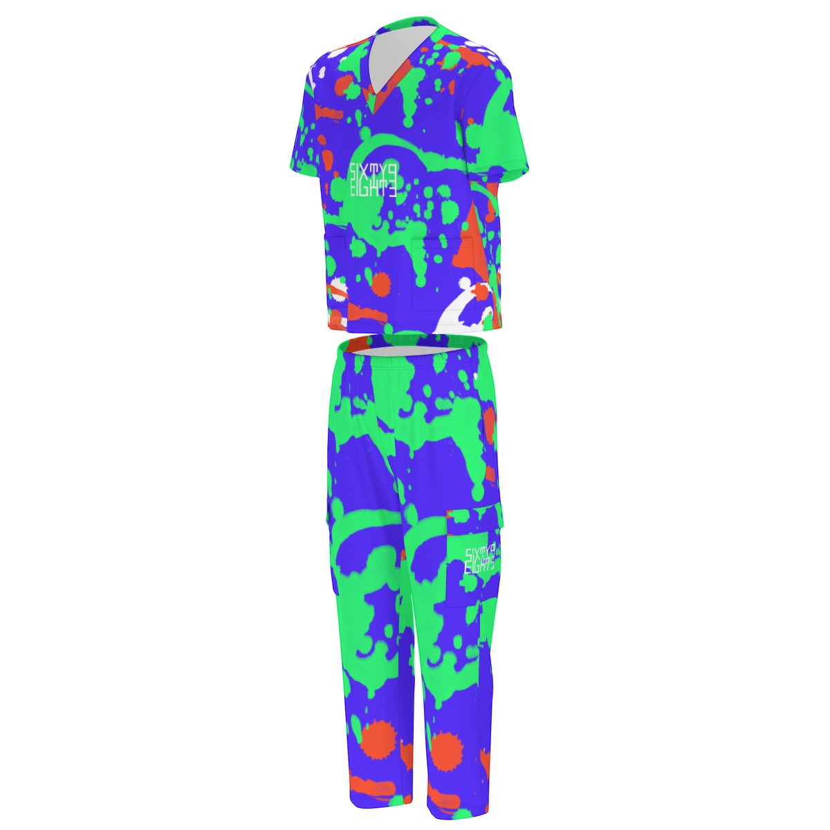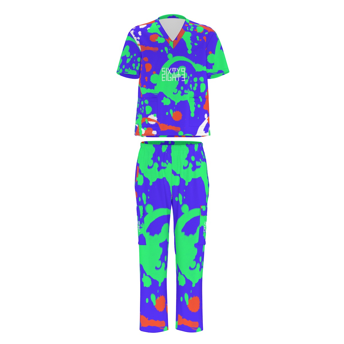Sixty Eight 93 Logo White Splatter #15 Unisex Scrub Set With Six Pockets