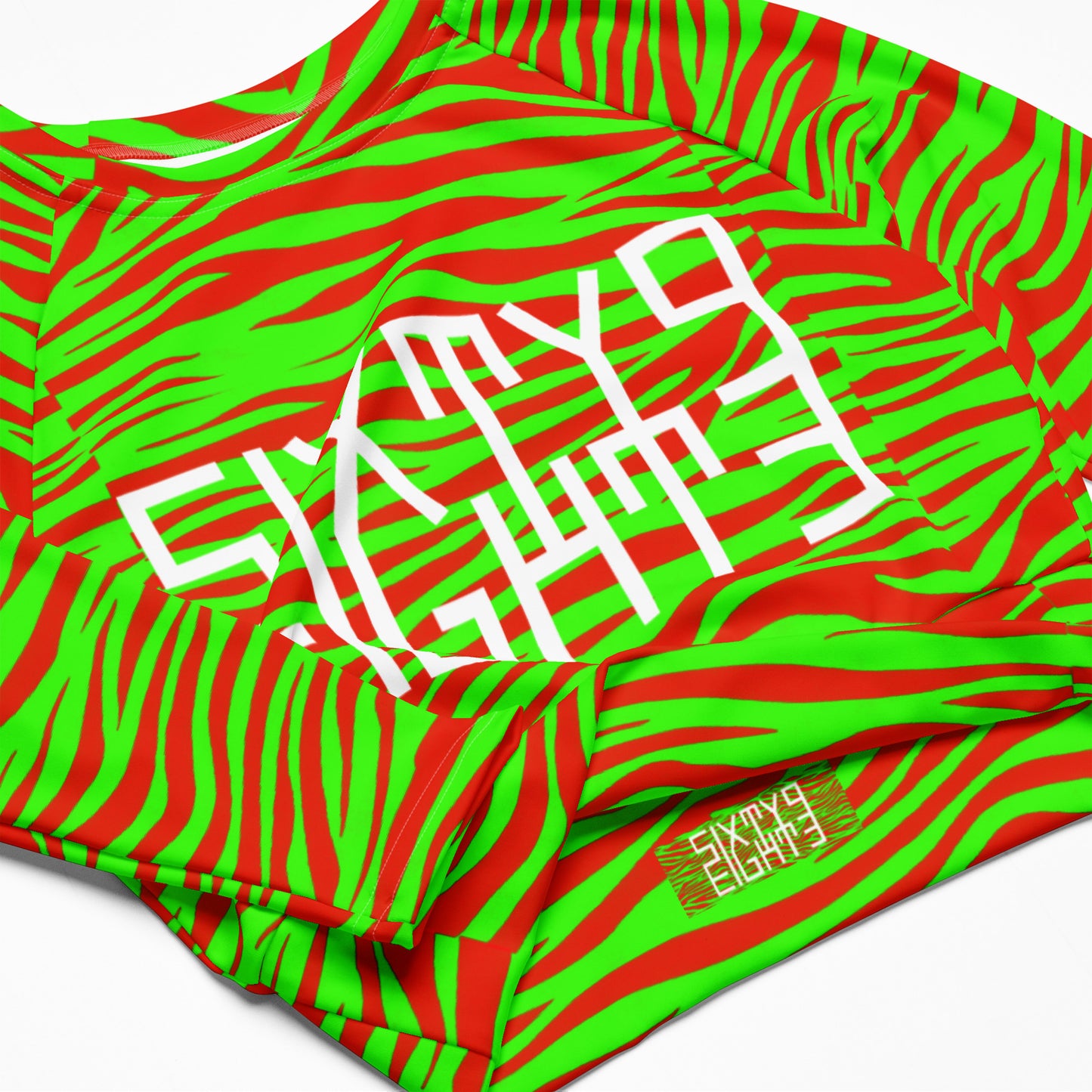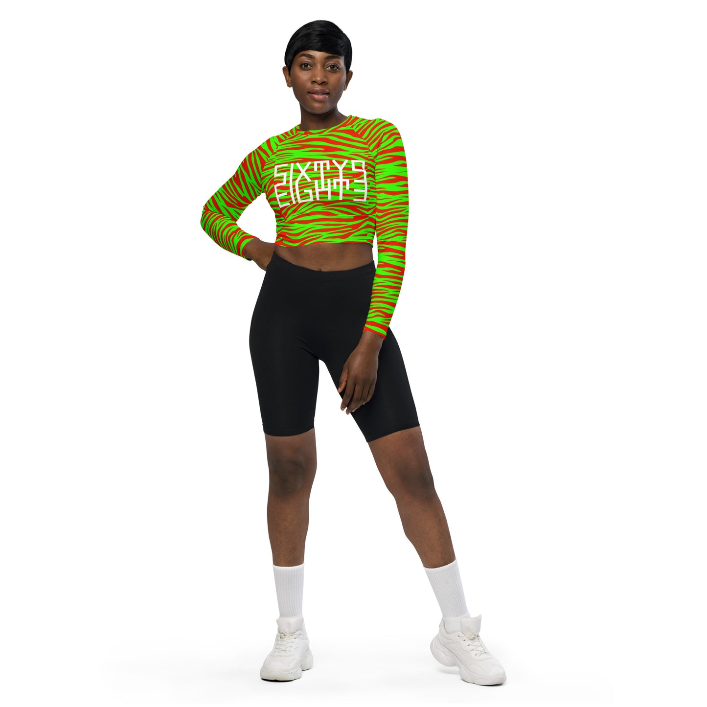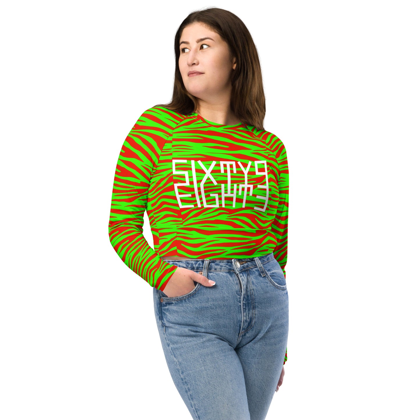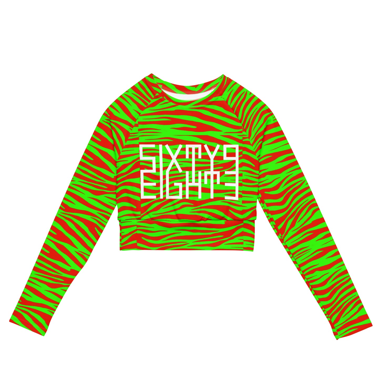 Sixty Eight 93 Logo White Zebra Strawberry Lime Recycled Long-Sleeve Crop Top