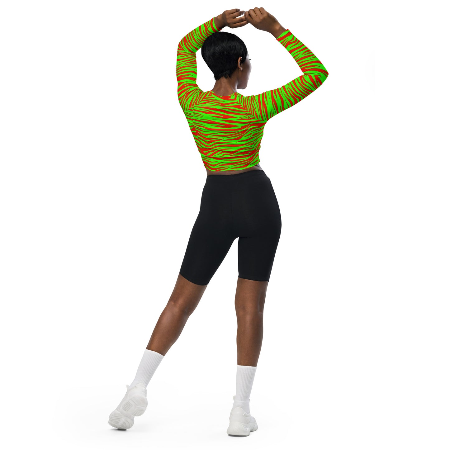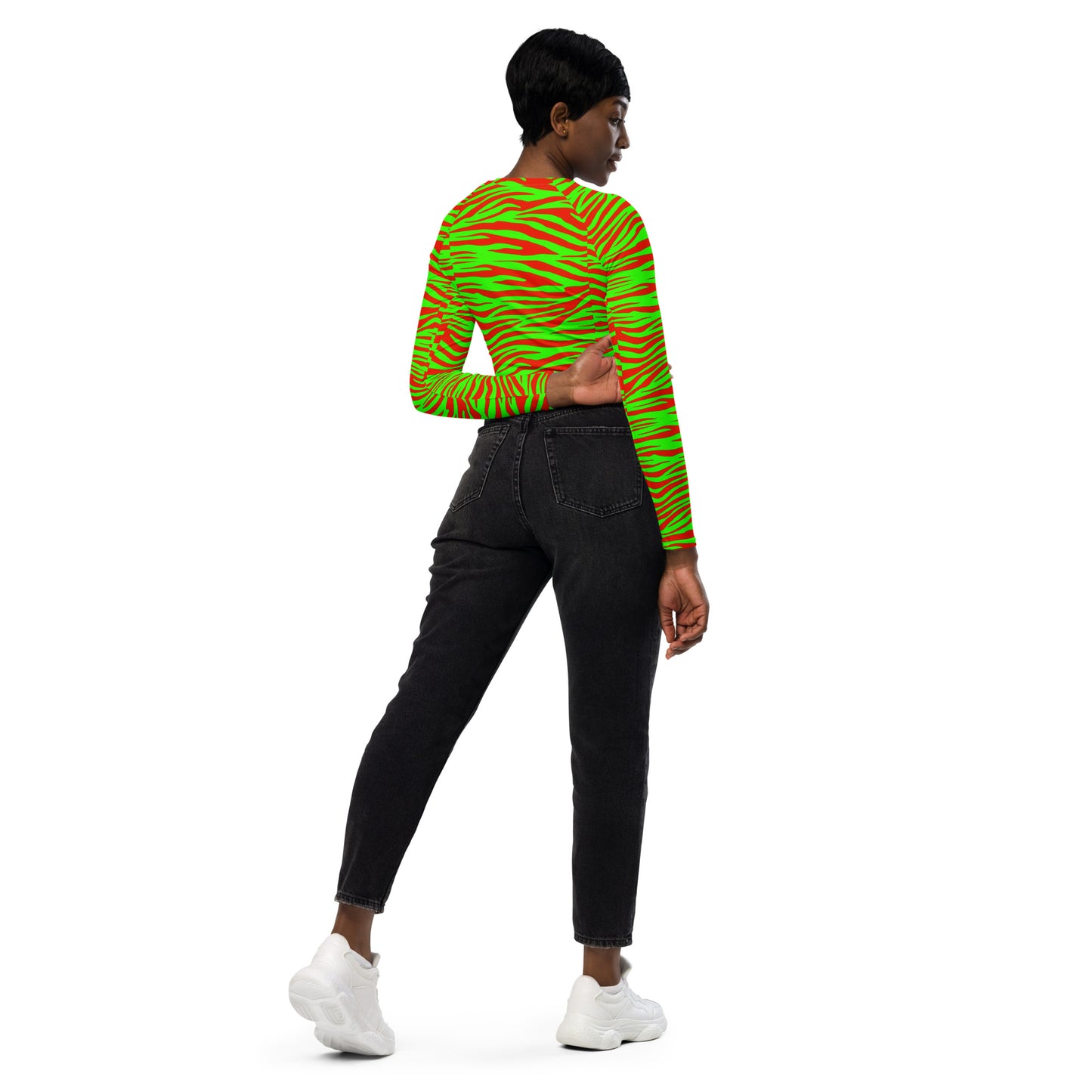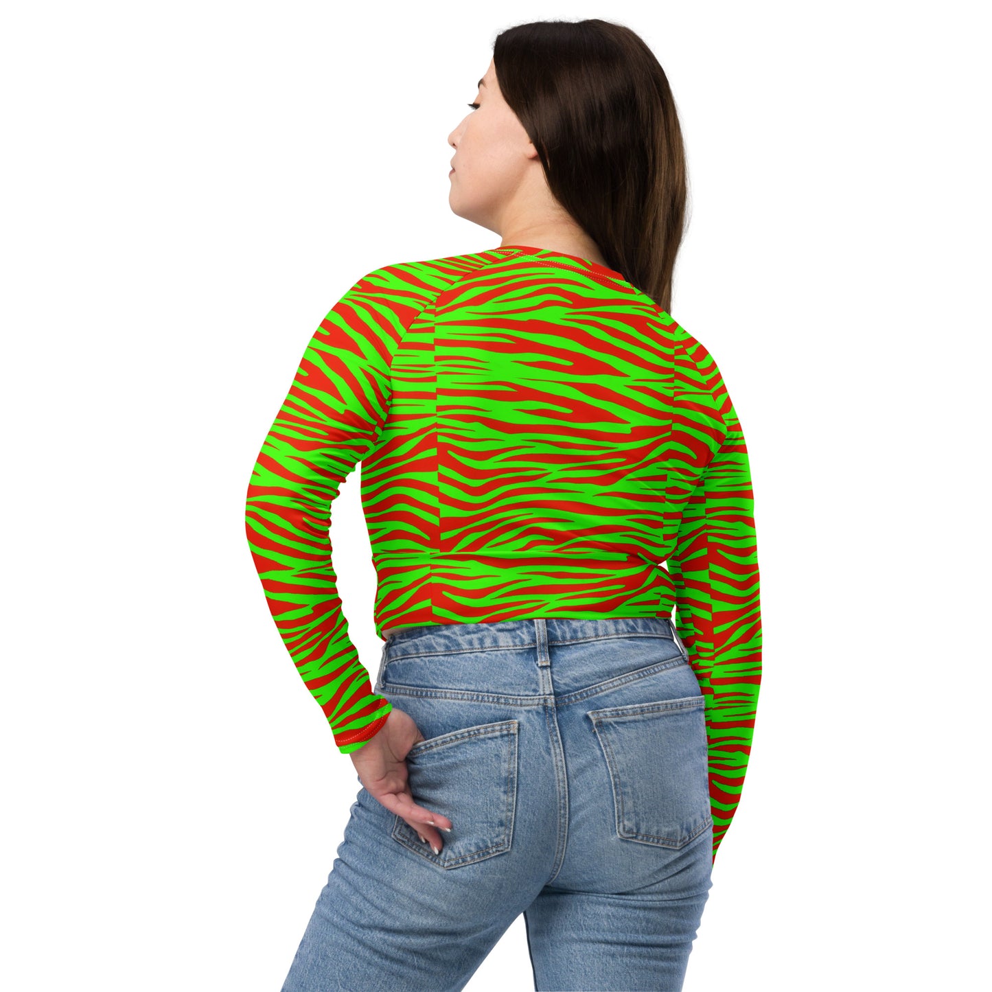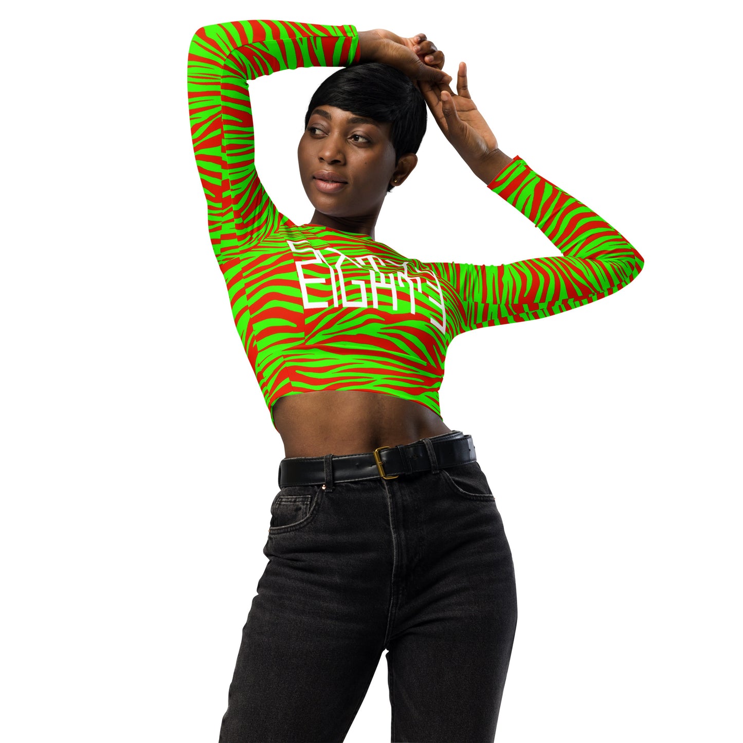 Sixty Eight 93 Logo White Zebra Strawberry Lime Recycled Long-Sleeve Crop Top