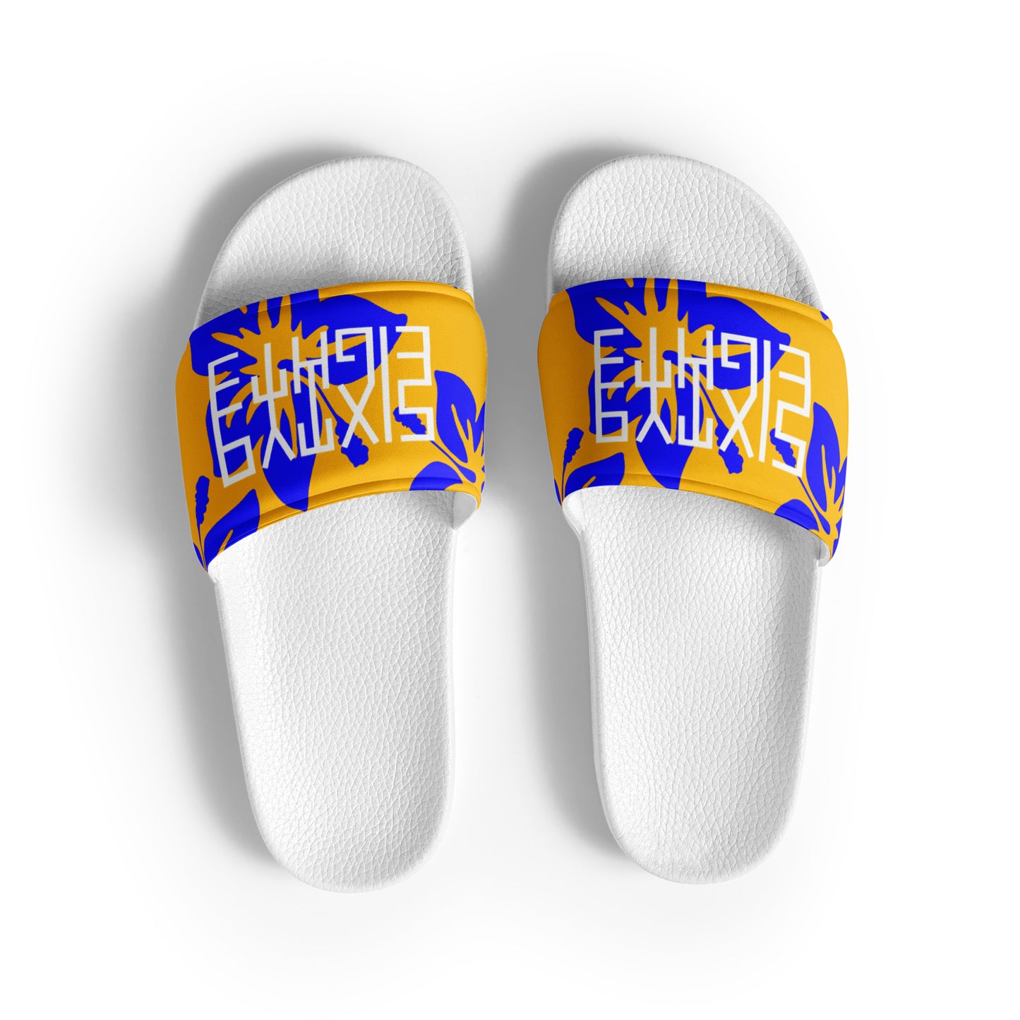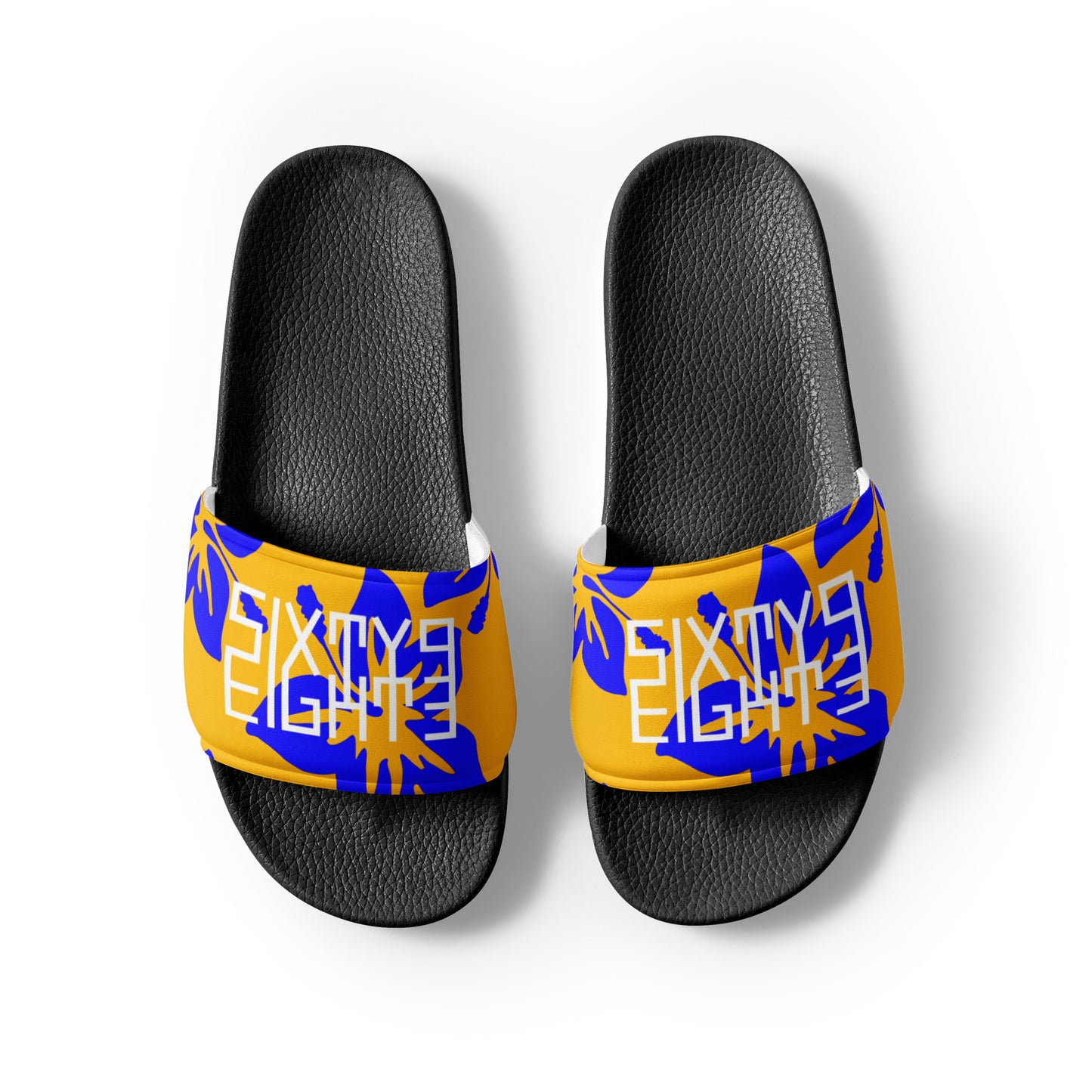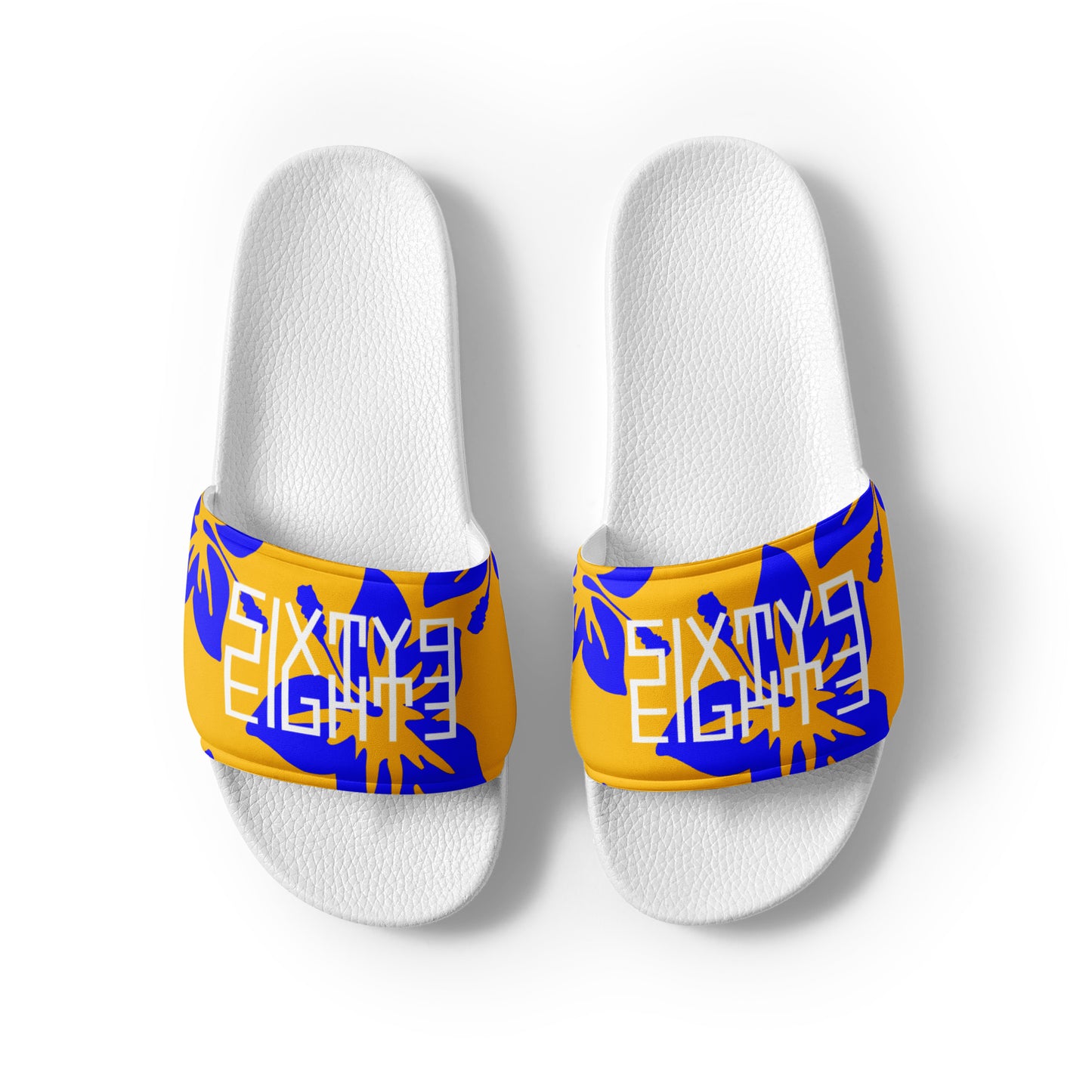 Sixty Eight 93 Logo White Hibiscus Blue & Orange Men’s Slides