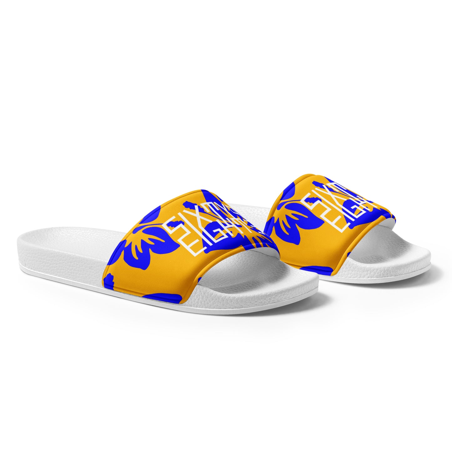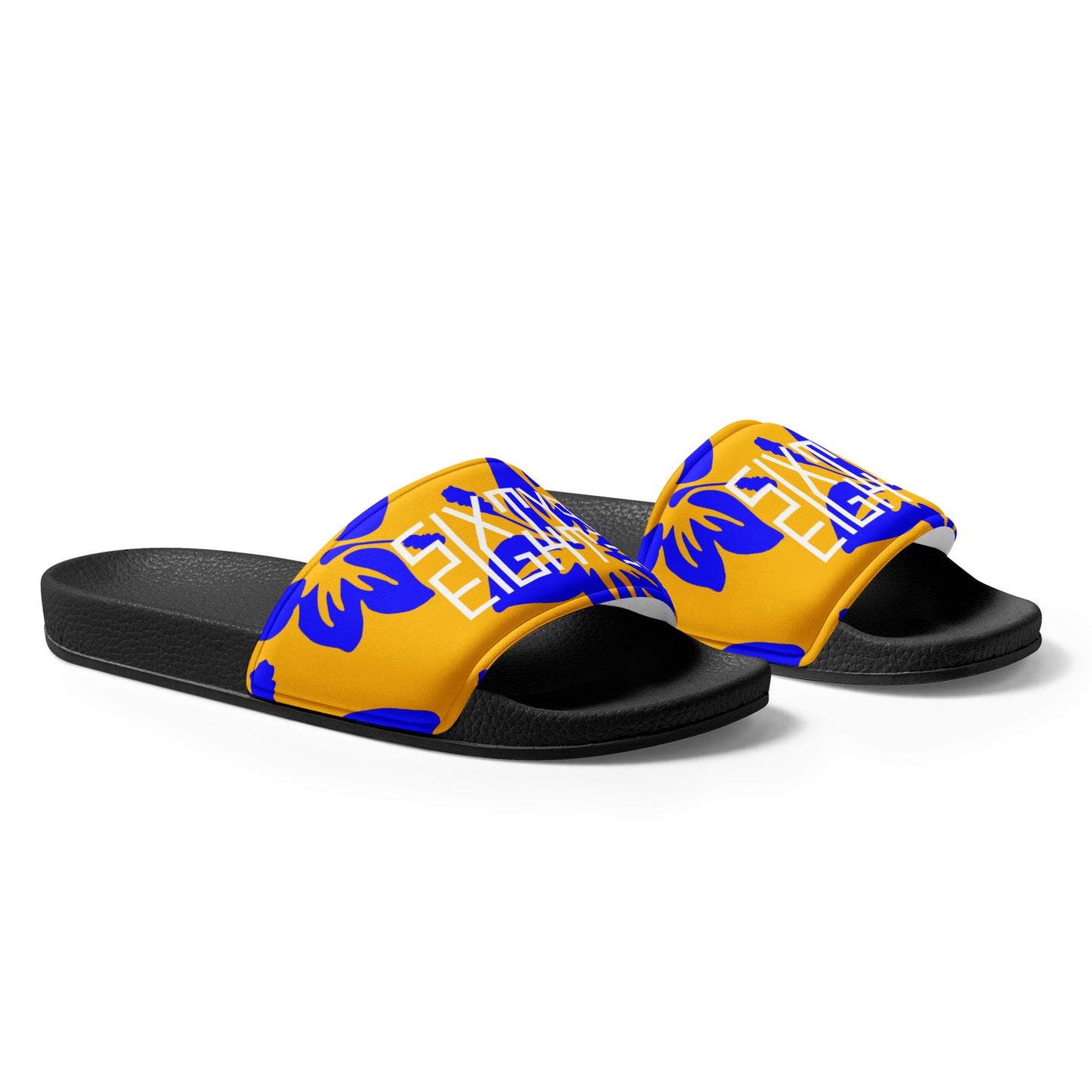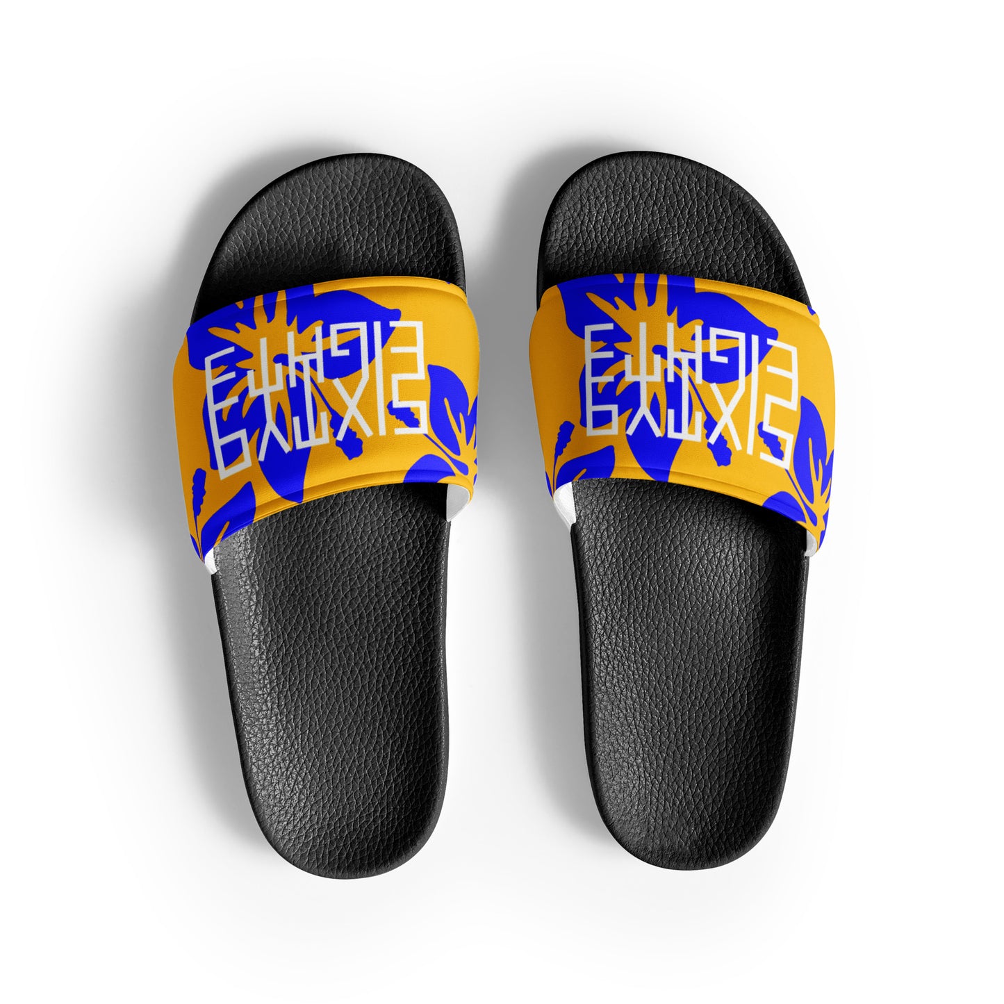 Sixty Eight 93 Logo White Hibiscus Blue & Orange Men’s Slides